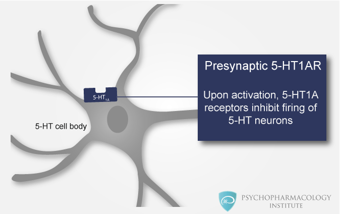 - Presynaptic autoreceptors on serotonergic cell bodies in the raphe nuclei. Upon stimulation, these receptors inhibit the firing of 5-HT neurons [3,4].