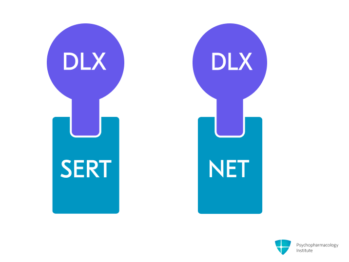 - Potent and selective serotonin and norepinephrine reuptake inhibition (SNRI), by blocking SERT and NET.