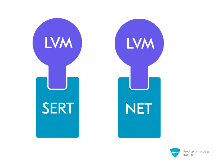 - Potent and selective serotonin and norepinephrine reuptake inhibition (SNRI), by blocking SERT and NET.