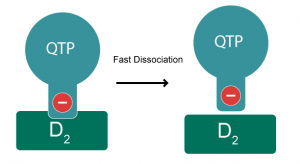 Quetiapine mechanism of action might involve rapid dissociation from D2 receptors.[/caption] PET studies show that there is a relationship between D2 receptor occupancy and antipsychotic effects [1]. D2 receptor occupancy in the ranges of 60 % to 75% is associated with antipsychotic efficacy. Interestingly, quetiapine has been shown to occupy approximately 30% of D2 receptors at therapeutic doses [2]. To explain the apparent discrepancy, Kapur proposed the “kiss and run” hypothesis. In a series of studies they found that in contrast to other antipsychotics, quetiapine had a more rapid “run-off”, or rapid dissociation, from D2 receptors [2].