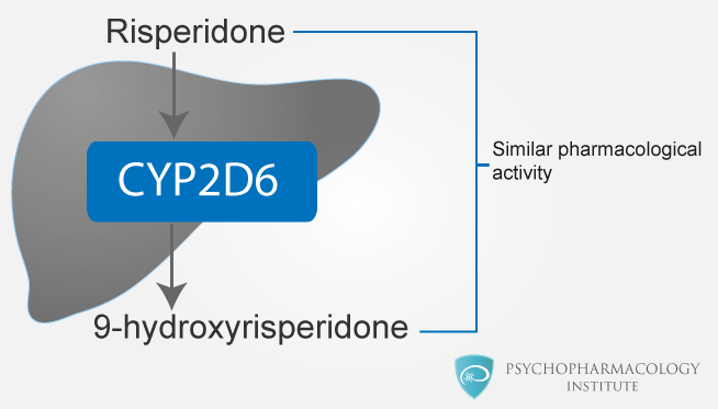 - The metabolite 9-hydroxyrisperidone has similar pharmacological activity as risperidone.