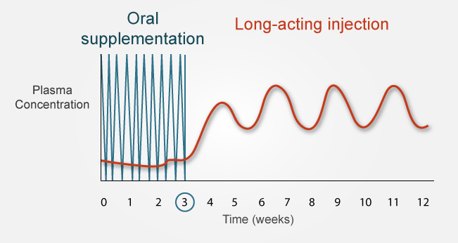- Long-acting risperidone should be supplemented with oral risperidone for 3 weeks.