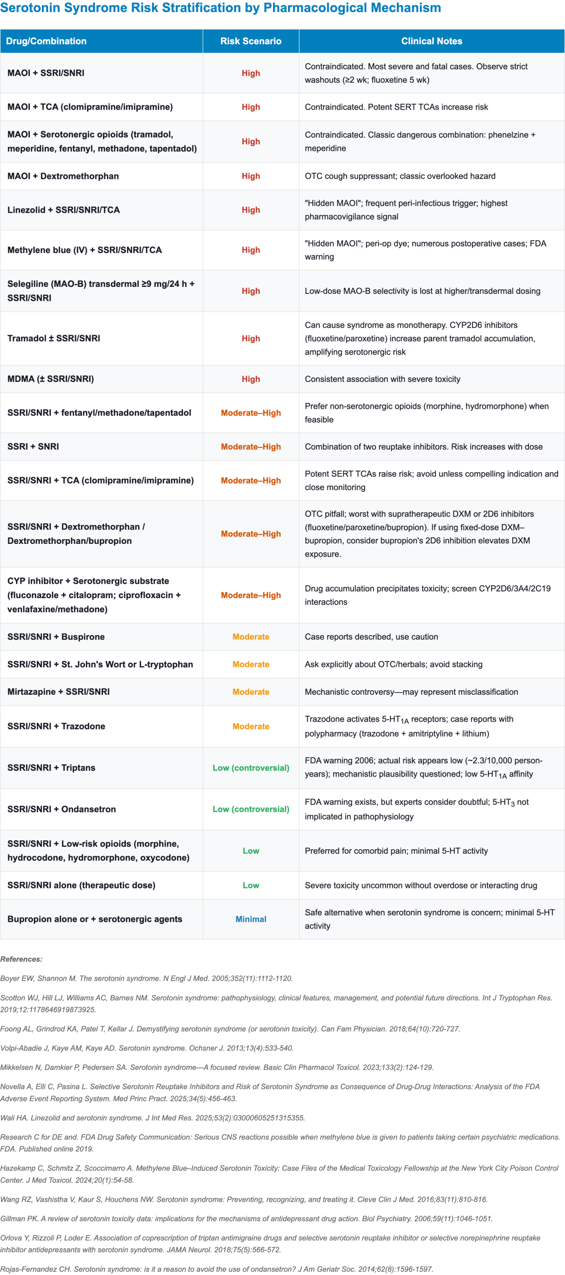 4. Wang, R. Z., Vashistha, V., Kaur, S., & Houchens, N. W. (2016). Serotonin syndrome: Preventing, recognizing, and treating it. Cleveland Clinic Journal of Medicine, 83(11), 810–816. https://doi.org/10.3949/ccjm.83a.15129