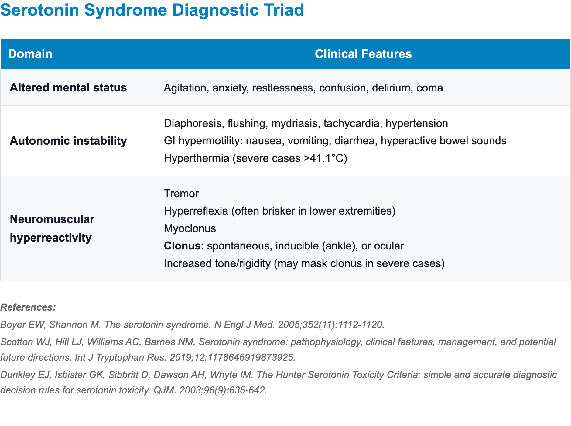 - The classical triad of clinical manifestations includes neuromuscular abnormalities, autonomic hyperactivity, and mental status changes [1,2]