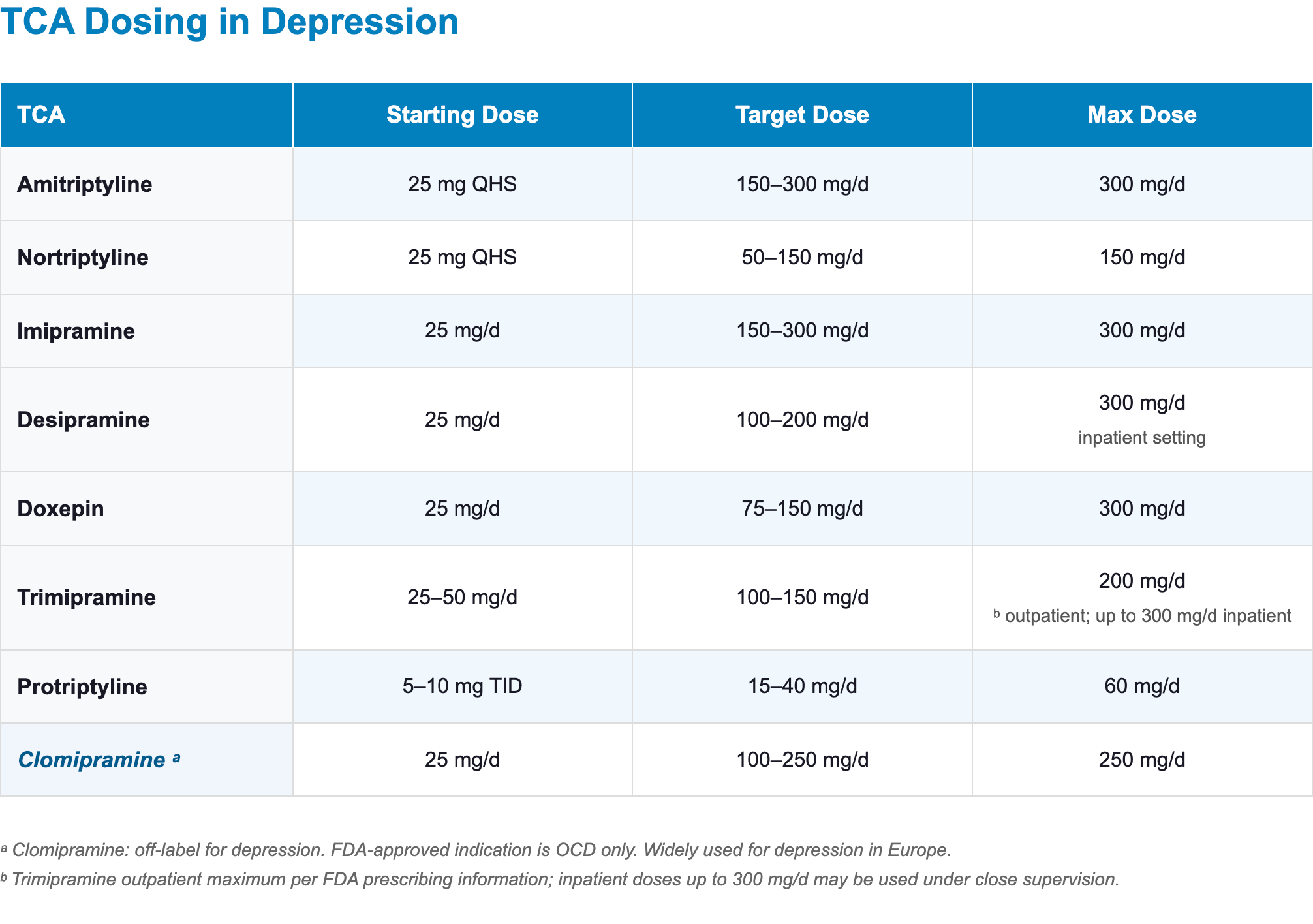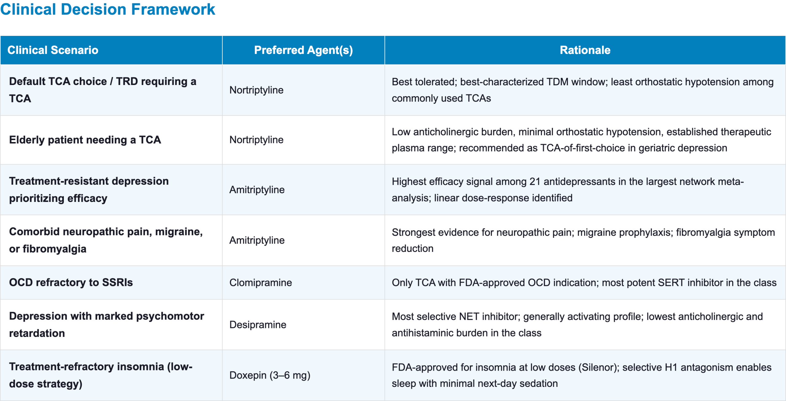 - Default TCA choice: Nortriptyline