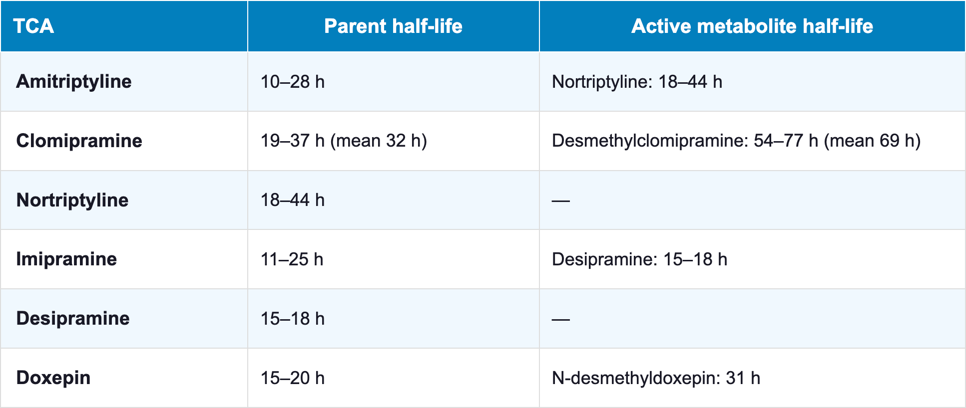 2. Moraczewski, J., Awosika, A. O., & Aedma, K. K. (2023). Tricyclic Antidepressants. In StatPearls. StatPearls Publishing. http://www.ncbi.nlm.nih.gov/books/NBK557791/