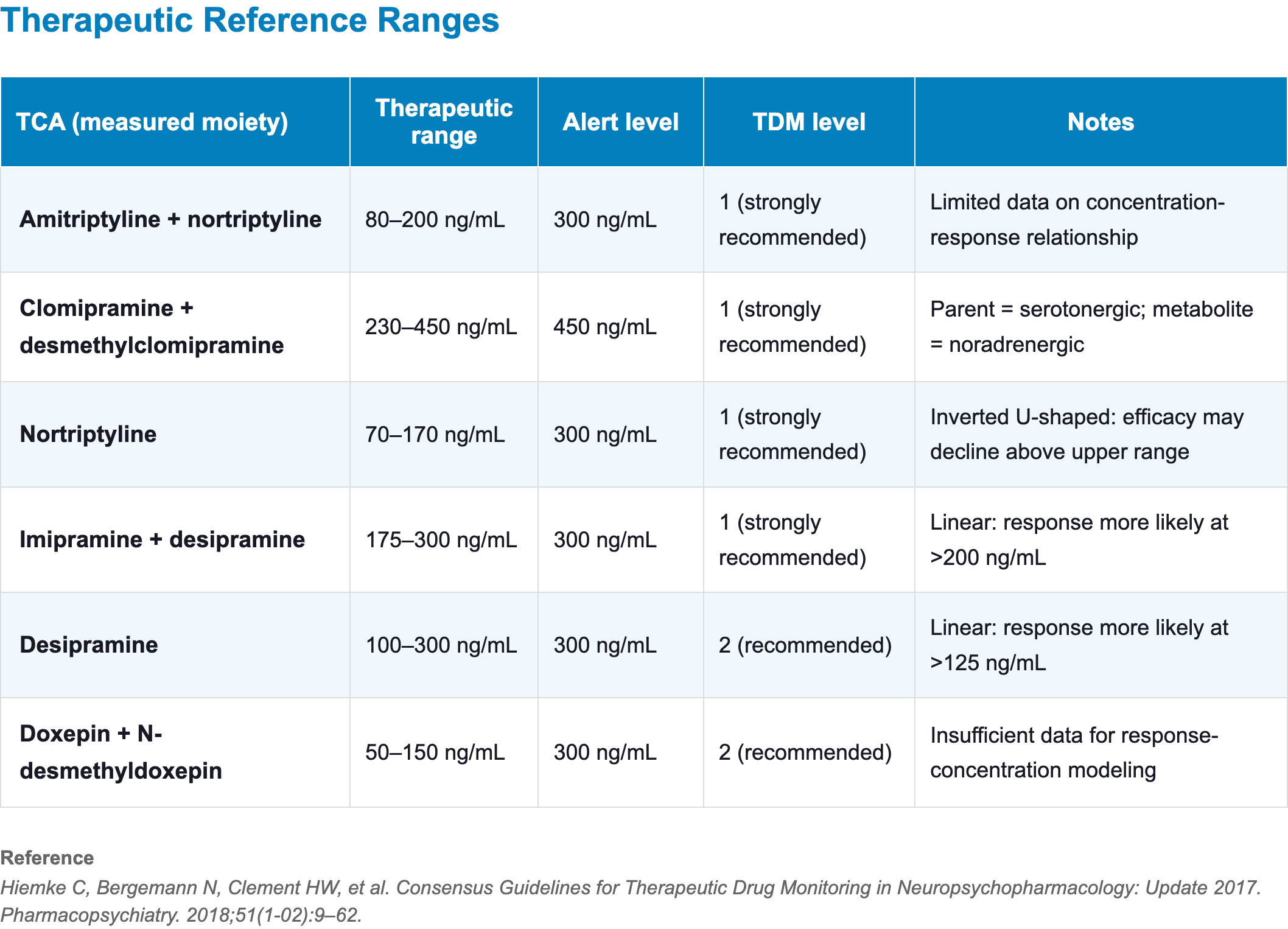44. Hiemke, C., Bergemann, N., Clement, H., Conca, A., Deckert, J., Domschke, K., Eckermann, G., Egberts, K., Gerlach, M., Greiner, C., Gründer, G., Haen, E., Havemann-Reinecke, U., Hefner, G., Helmer, R., Janssen, G., Jaquenoud, E., Laux, G., Messer, T., … Baumann, P. (2018). Consensus Guidelines for Therapeutic Drug Monitoring in Neuropsychopharmacology: Update 2017. Pharmacopsychiatry, 51(01/02), 9–62. https://doi.org/10.1055/s-0043-116492