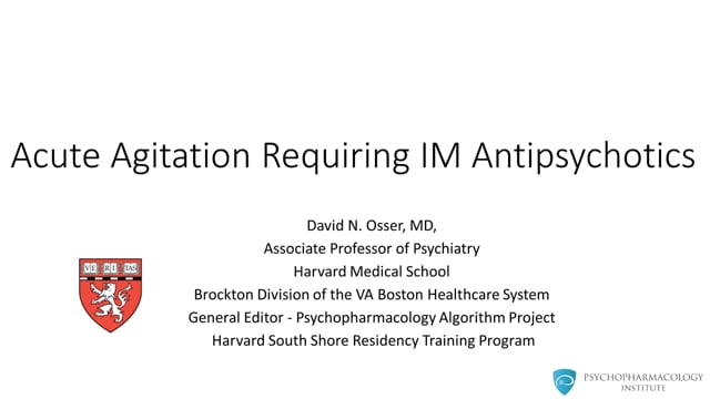 - IM haloperidol 5 mg plus lorazepam 2mg is still the treatment of choice for rapid, safe, cost-effective treatment of severe agitation in schizophrenia.