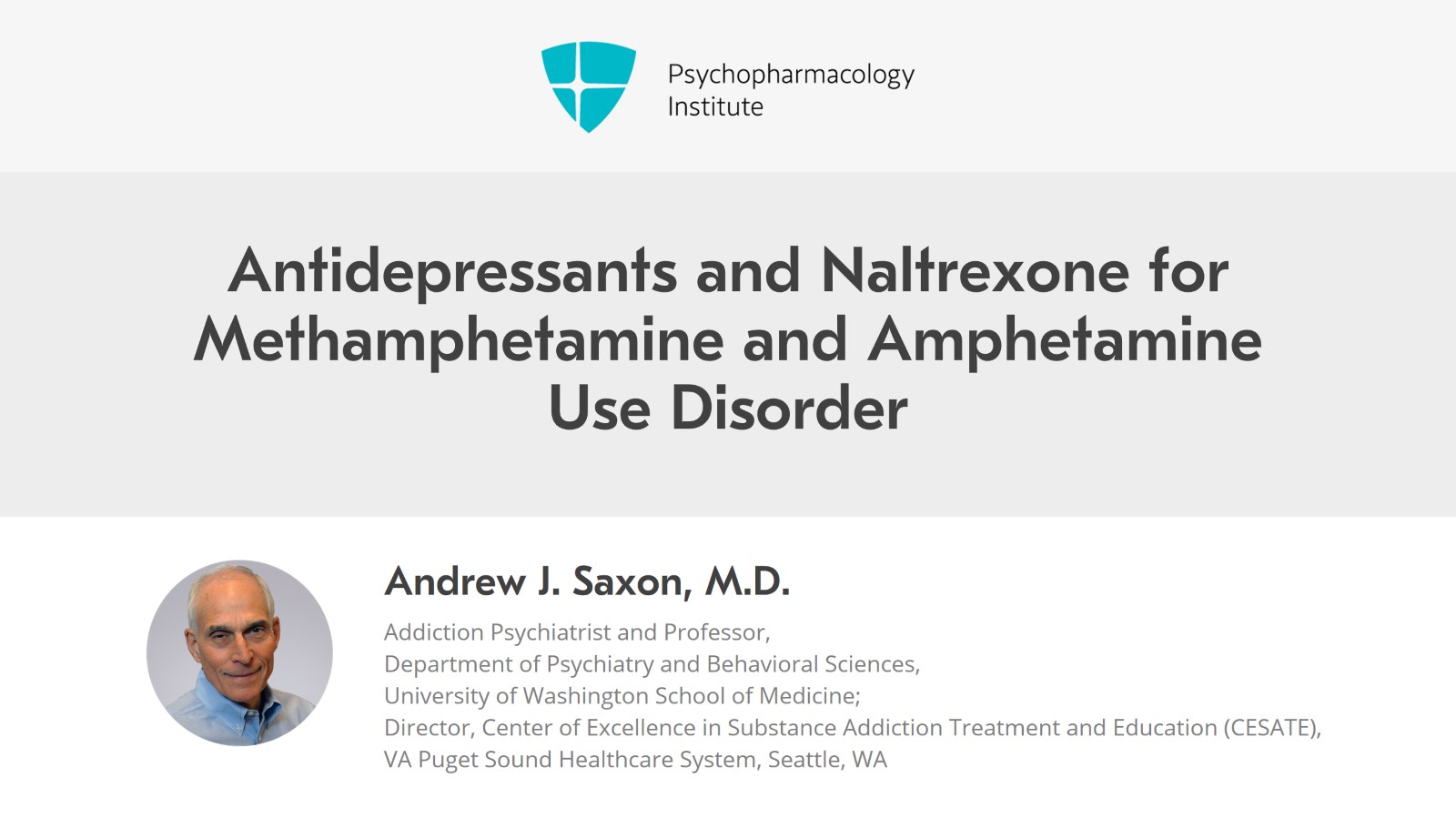 Next, we’re going to turn to looking at a couple of antidepressants and also to opioid antagonist for methamphetamine and amphetamine use disorder.