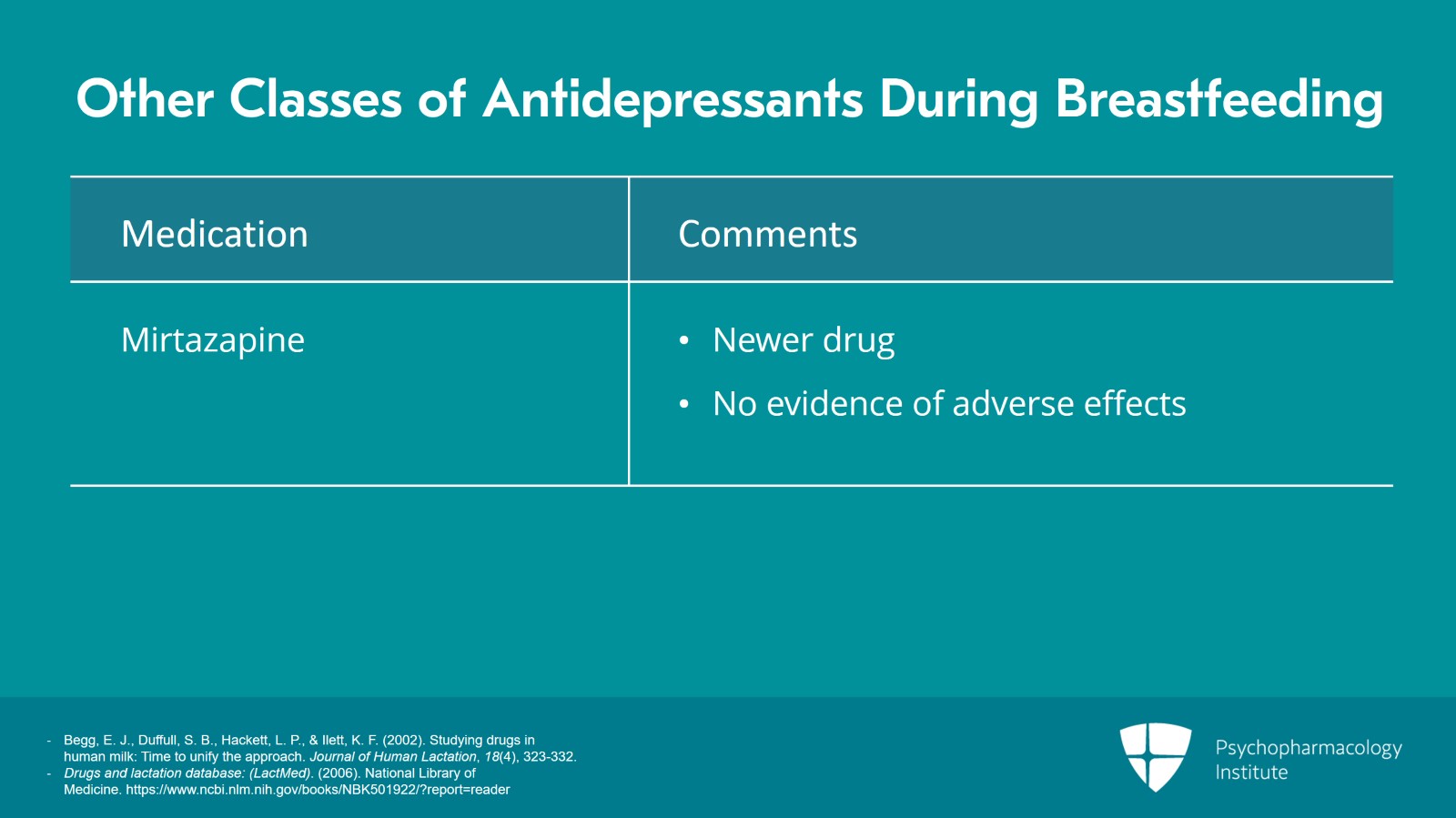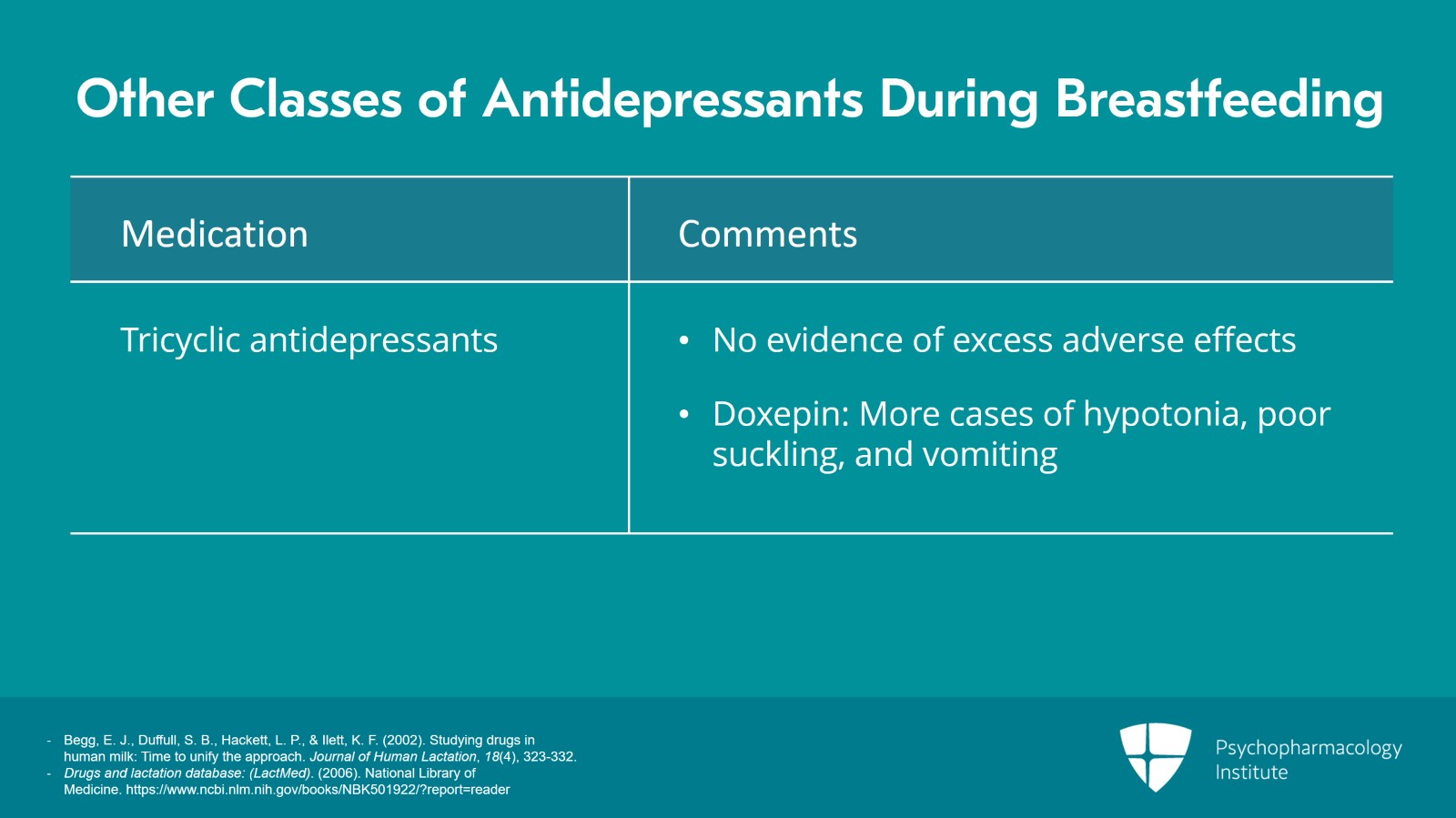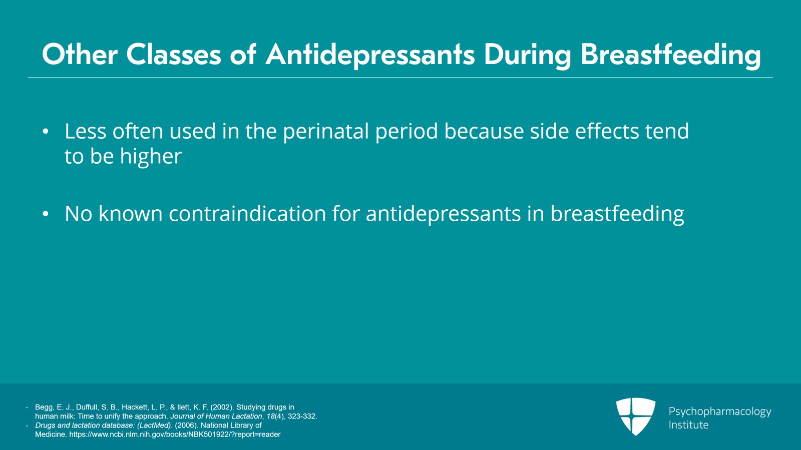 - Drugs and lactation database: (LactMed). (2006). National Library of Medicine. https://www.ncbi.nlm.nih.gov/books/NBK501922/?report=reader