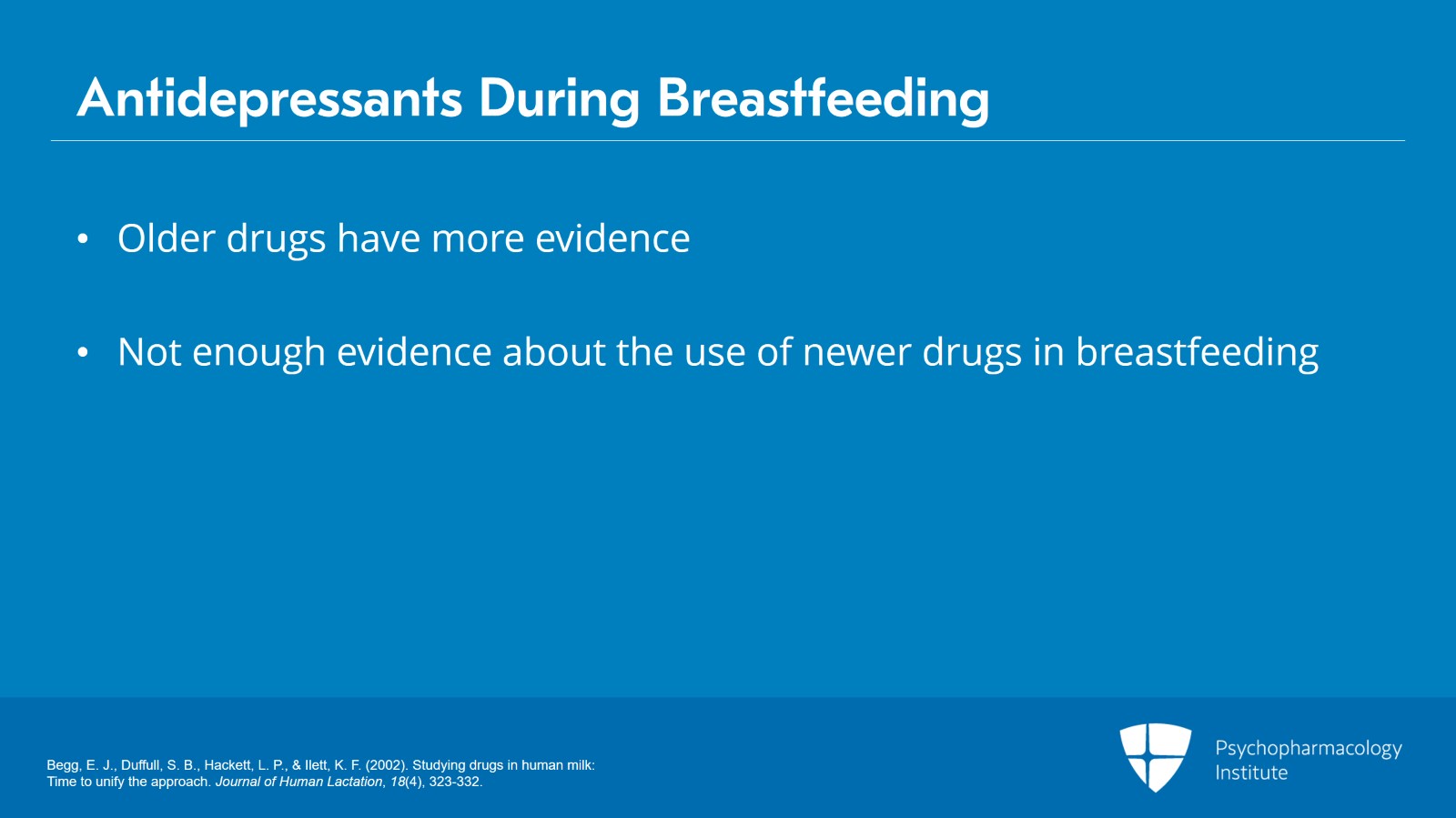 - Begg, E. J., Duffull, S. B., Hackett, L. P., & Ilett, K. F. (2002). Studying drugs in human milk: Time to unify the approach. Journal of Human Lactation, 18(4), 323-332.