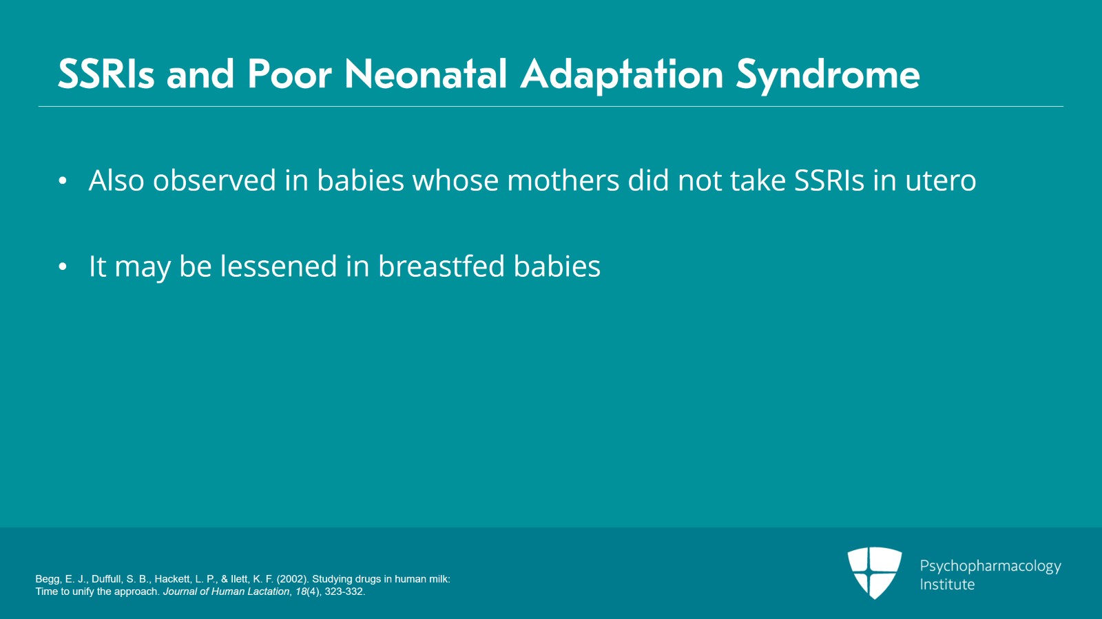 We don't really know what it is whether it's withdrawal, toxicity or something else because it's also observed in babies whose mothers did not take SSRIs in utero. But there's some evidence that it may be lessened in breastfed babies. So that's actually one advantage to a woman who used the medication in pregnancy staying on that medication in breastfeeding.