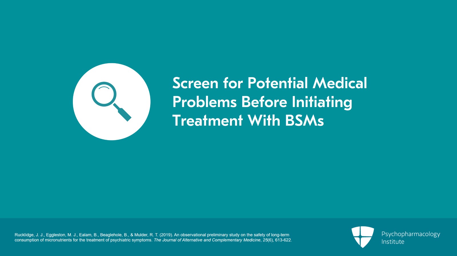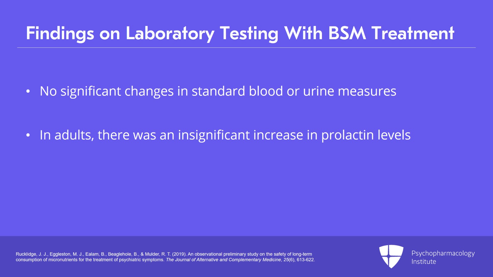 - Rucklidge, J. J., Eggleston, M. J., Ealam, B., Beaglehole, B., & Mulder, R. T. (2019). An observational preliminary study on the safety of long-term consumption of micronutrients for the treatment of psychiatric symptoms. The Journal of Alternative and Complementary Medicine, 25(6), 613-622.