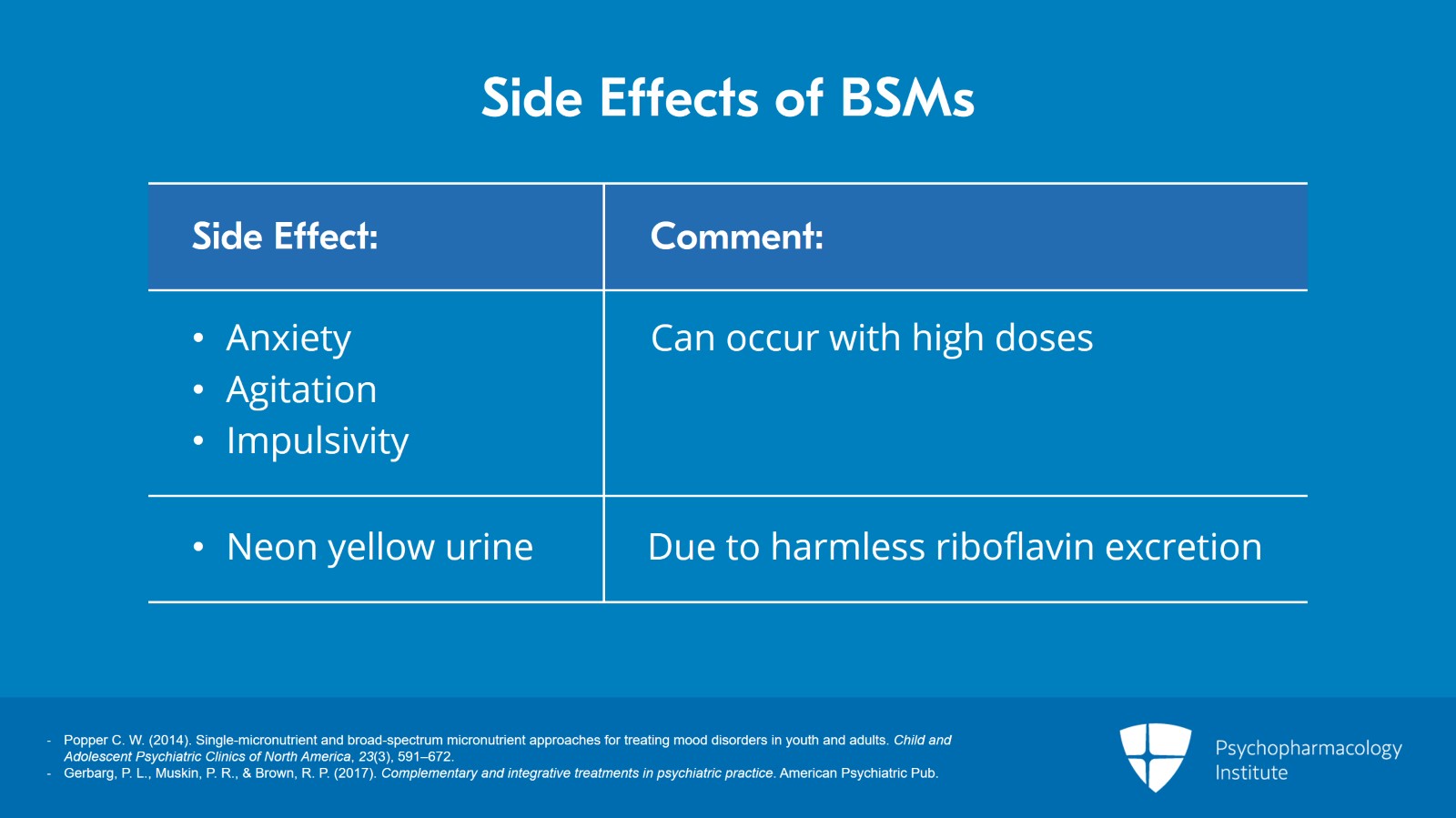 - Popper C. W. (2014). Single-micronutrient and broad-spectrum micronutrient approaches for treating mood disorders in youth and adults. Child and Adolescent Psychiatric Clinics of North America, 23(3), 591–672.