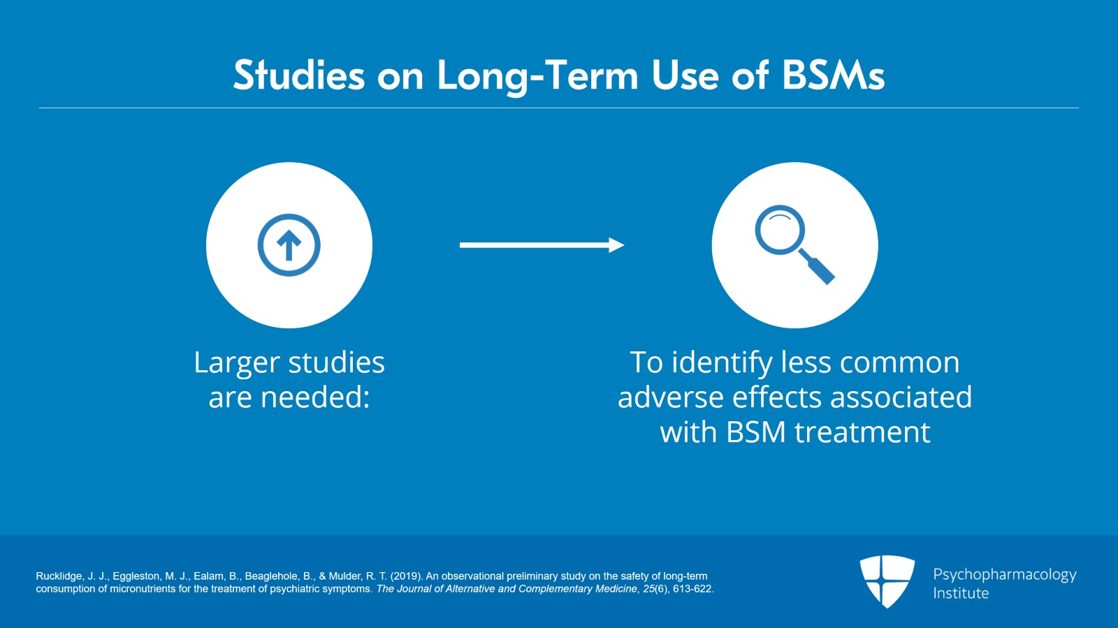 Larger long-term studies are needed. However, to date, funding for micronutrient research has been limited. Only through large sampling and post-marketing surveillance is it possible to identify less common adverse effects associated with this treatment.