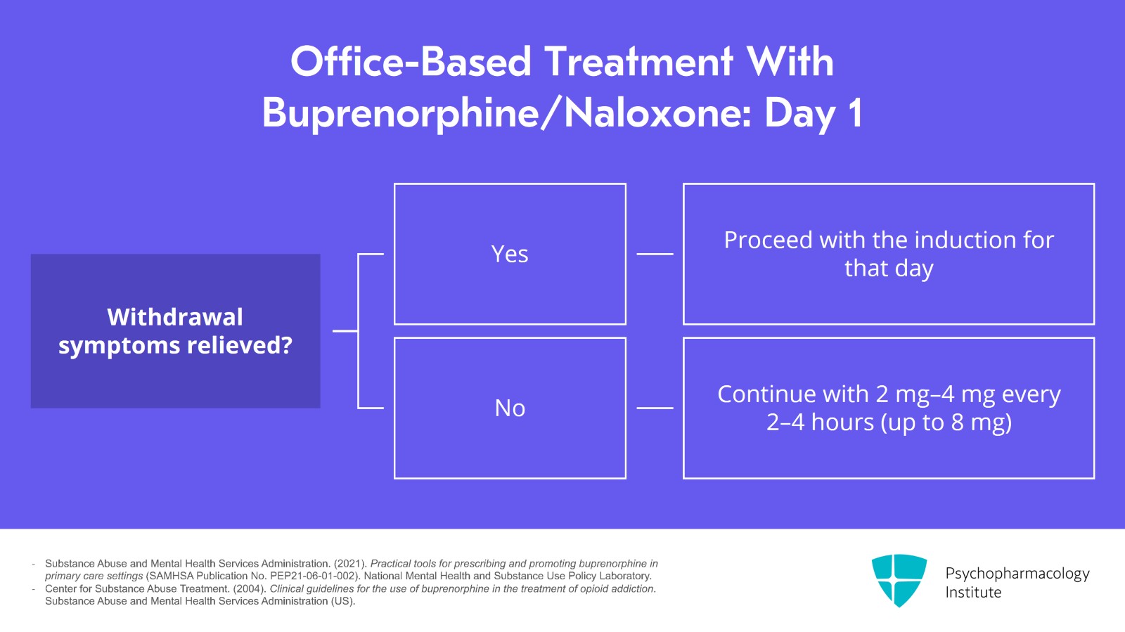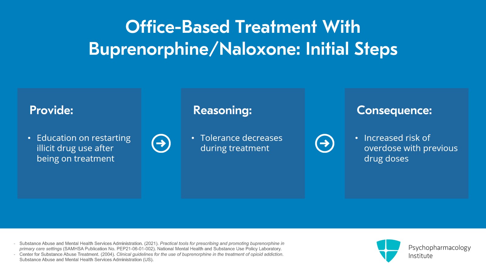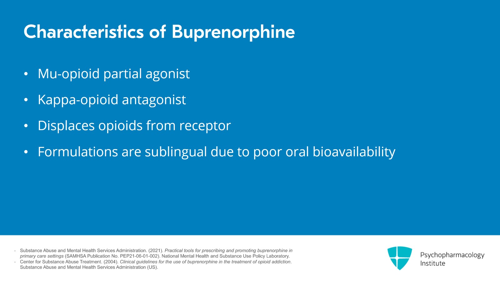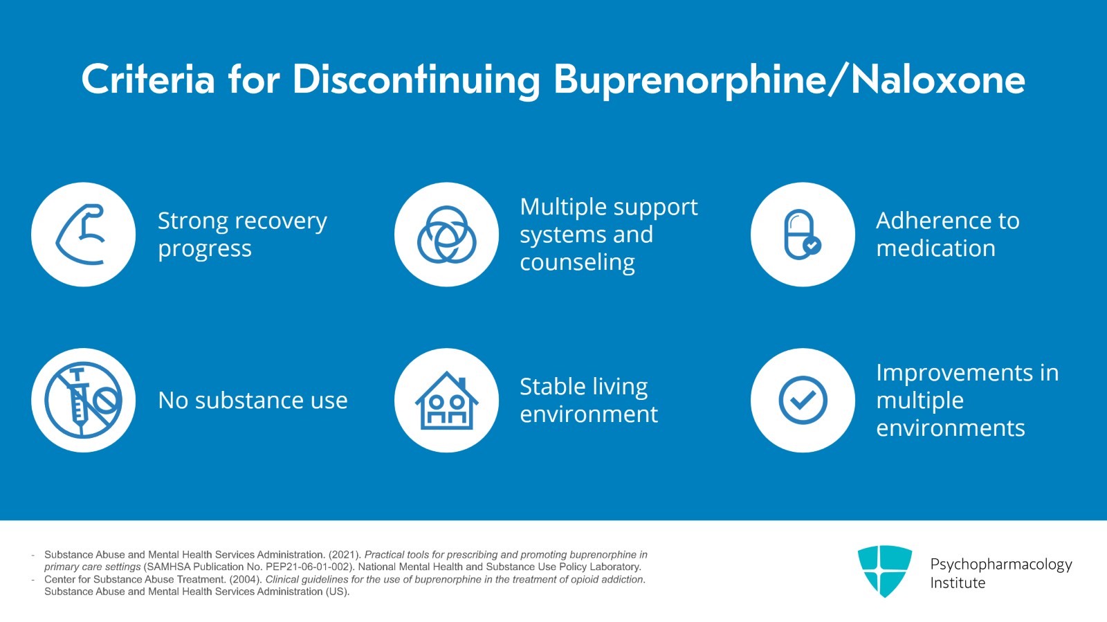 - Substance Abuse and Mental Health Services Administration. (2021). Practical tools for prescribing and promoting buprenorphine in primary care settings (SAMHSA Publication No. PEP21-06-01-002). National Mental Health and Substance Use Policy Laboratory.