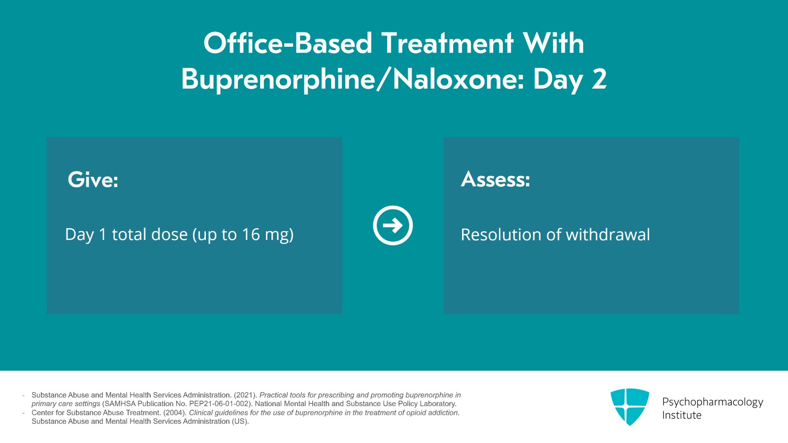 On day 2, we give the day 1 total dose which can be up to 16 mg and then see if withdrawal is completely resolved.