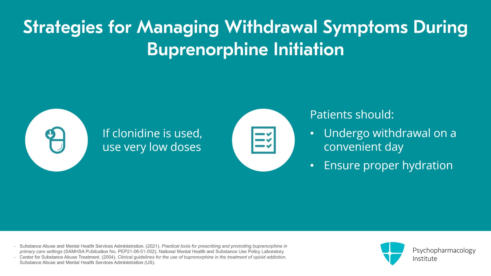 - Center for Substance Abuse Treatment. (2004). Clinical guidelines for the use of buprenorphine in the treatment of opioid addiction. Substance Abuse and Mental Health Services Administration (US).