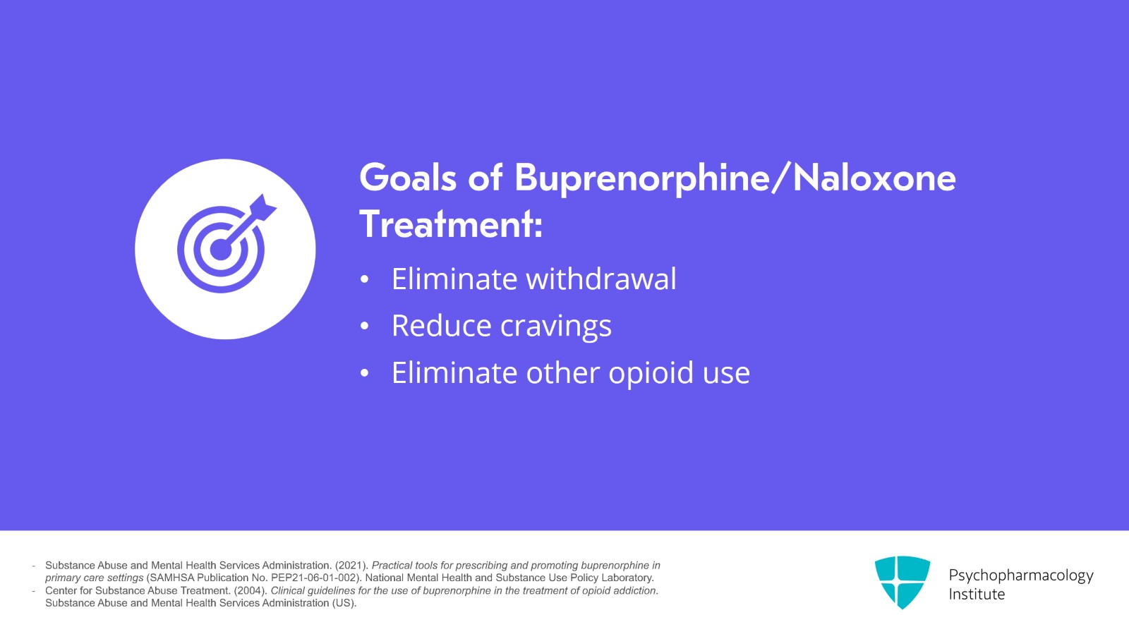 Moving along, the goal of treatment is to eliminate withdrawal, to reduce cravings and to eliminate other opioid use. I feel most satisfied in working with patients on this medication when they tell me they feel normal again and they're able to engage in their regular activities without opioids being something that they're worried about.