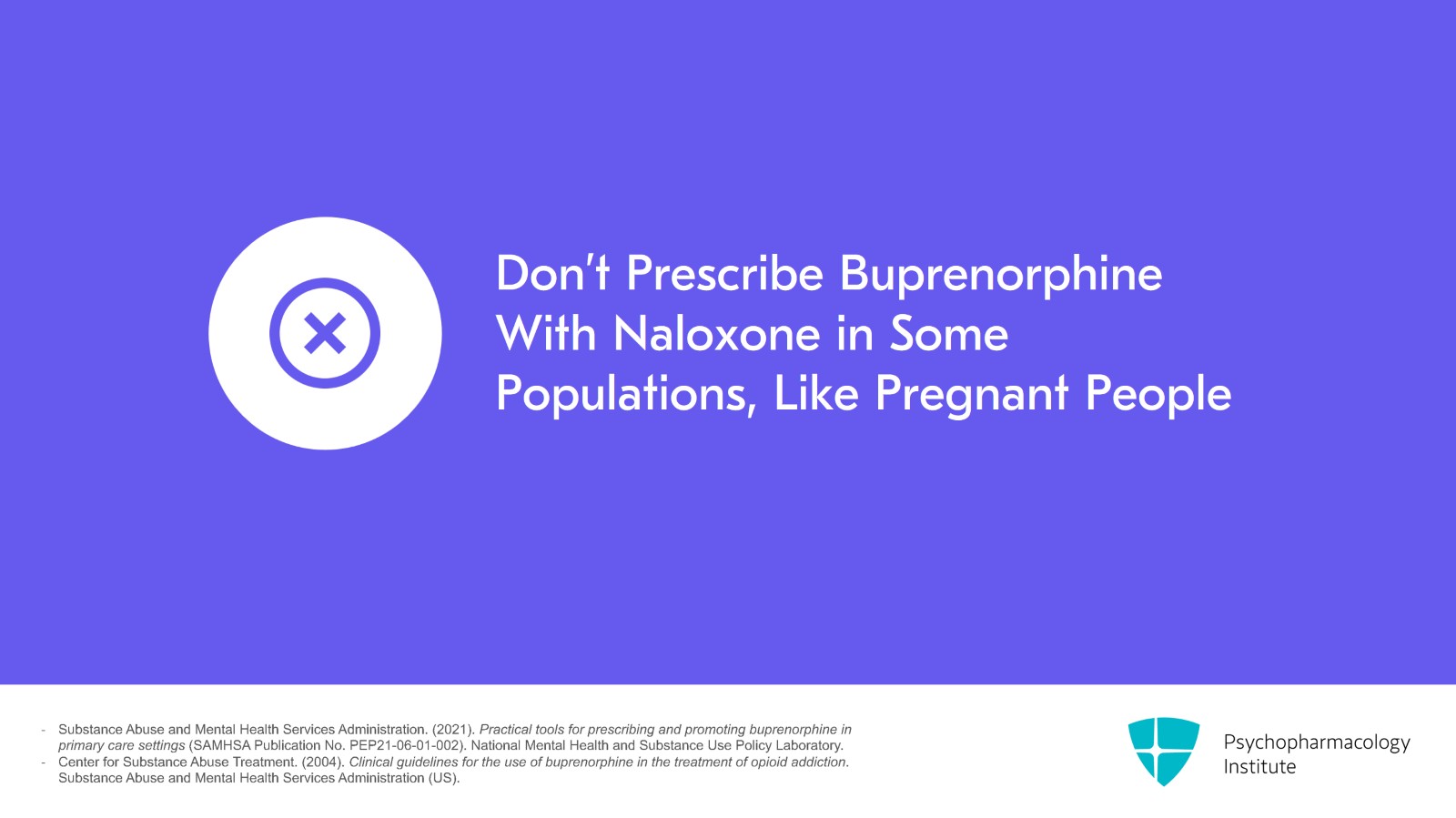 However, note for some populations like pregnant people, it is not appropriate to prescribe buprenorphine with naloxone. It must just be buprenorphine.