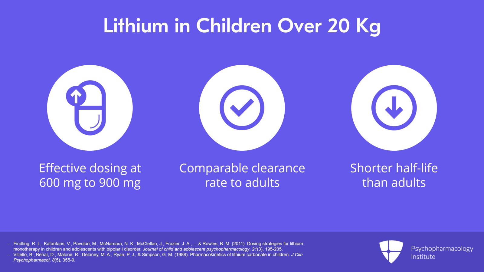 - Vitiello, B., Behar, D., Malone, R., Delaney, M. A., Ryan, P. J., & Simpson, G. M. (1988). Pharmacokinetics of lithium carbonate in children. J Clin Psychopharmacol, 8(5), 355-9.