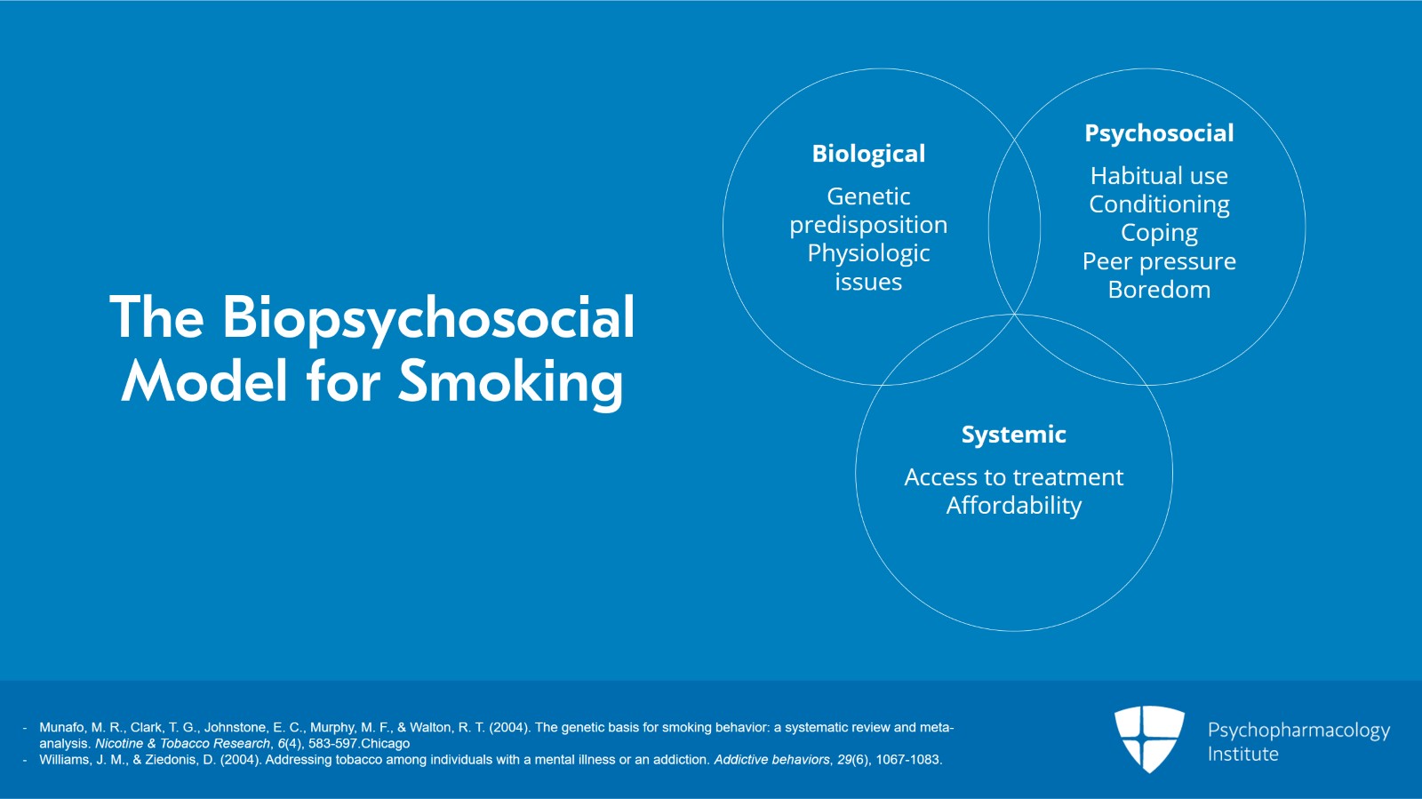 I think the first thing to at least understand just like any other psychiatric illness that we think about, there should be a perspective from the biopsychosocial model that there are certain biologic and sort of genetic predisposition to tobacco use and that there are real physiologic issues that come into play during use and treatment.