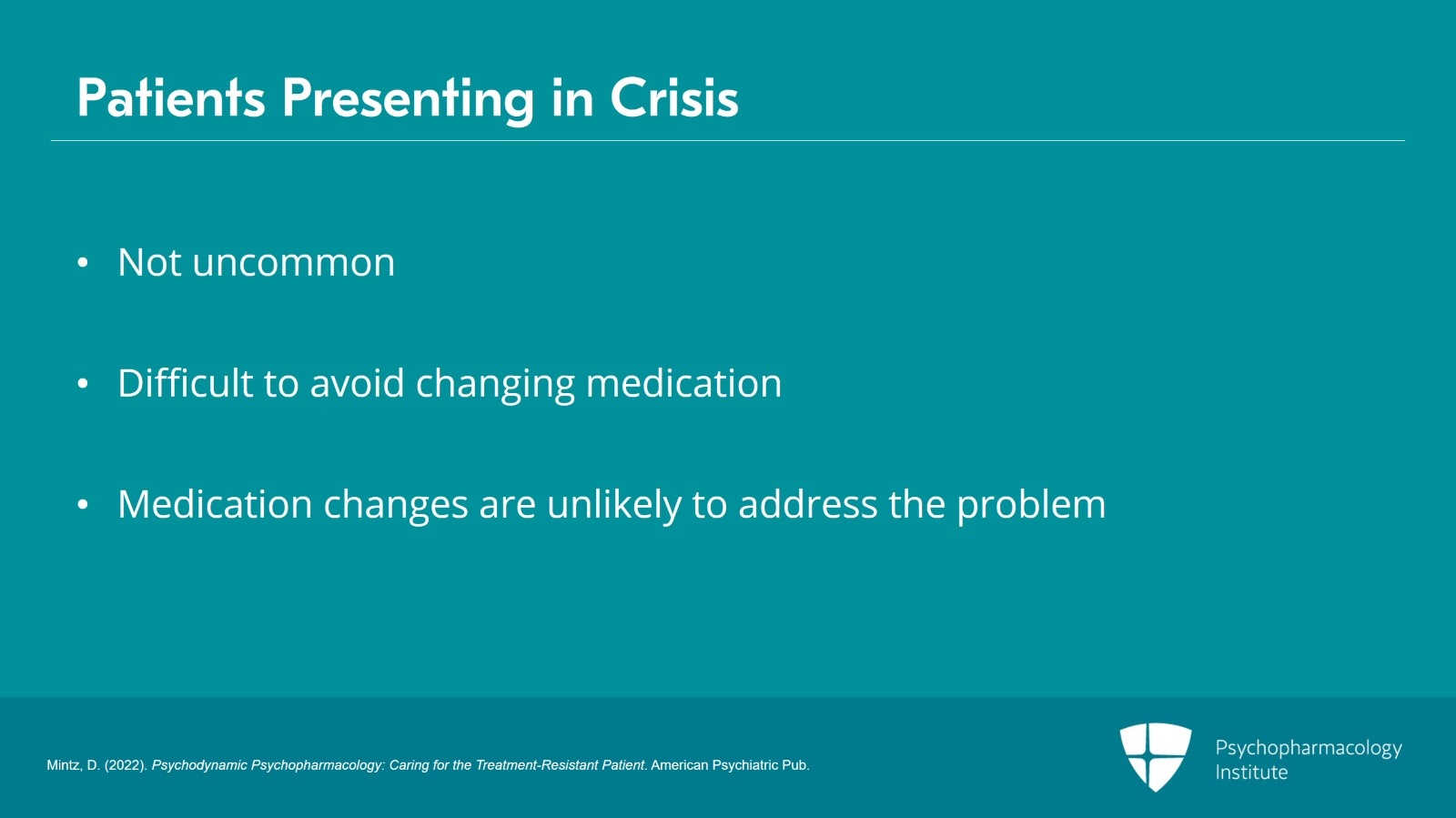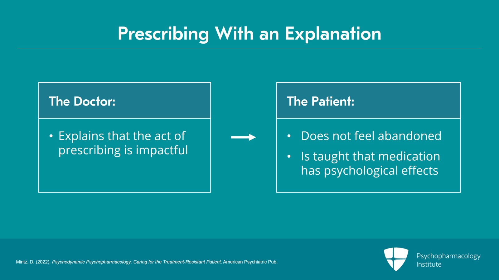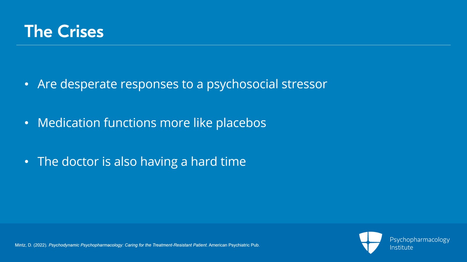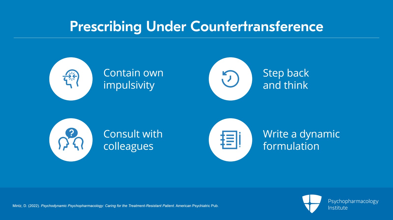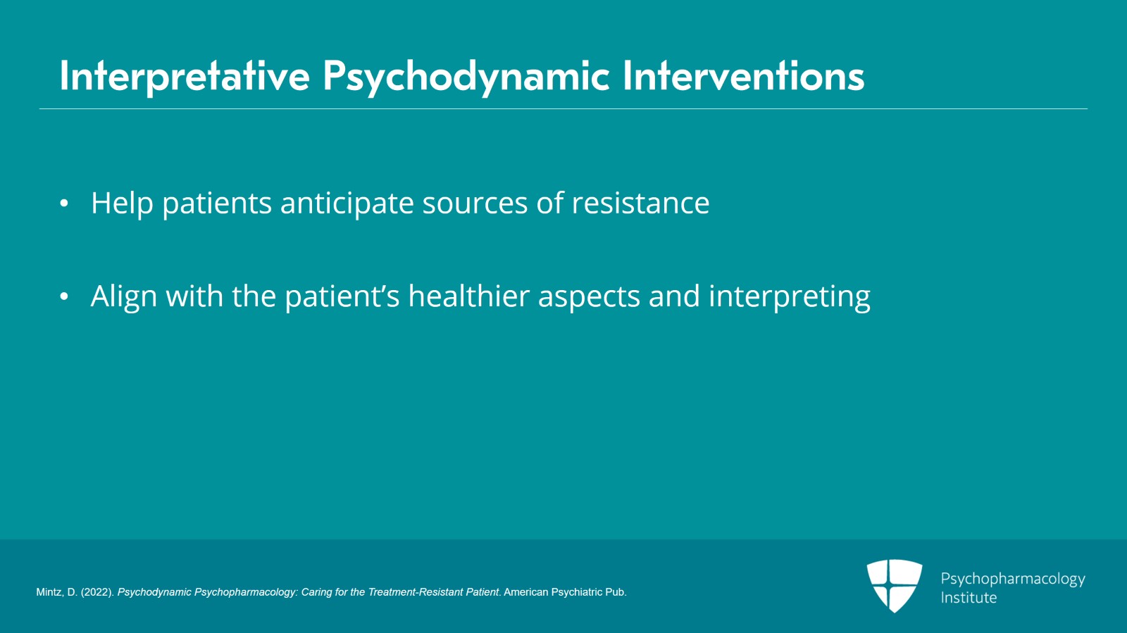 - Mintz, D. (2022). Psychodynamic Psychopharmacology: Caring for the Treatment-Resistant Patient. American Psychiatric Pub.