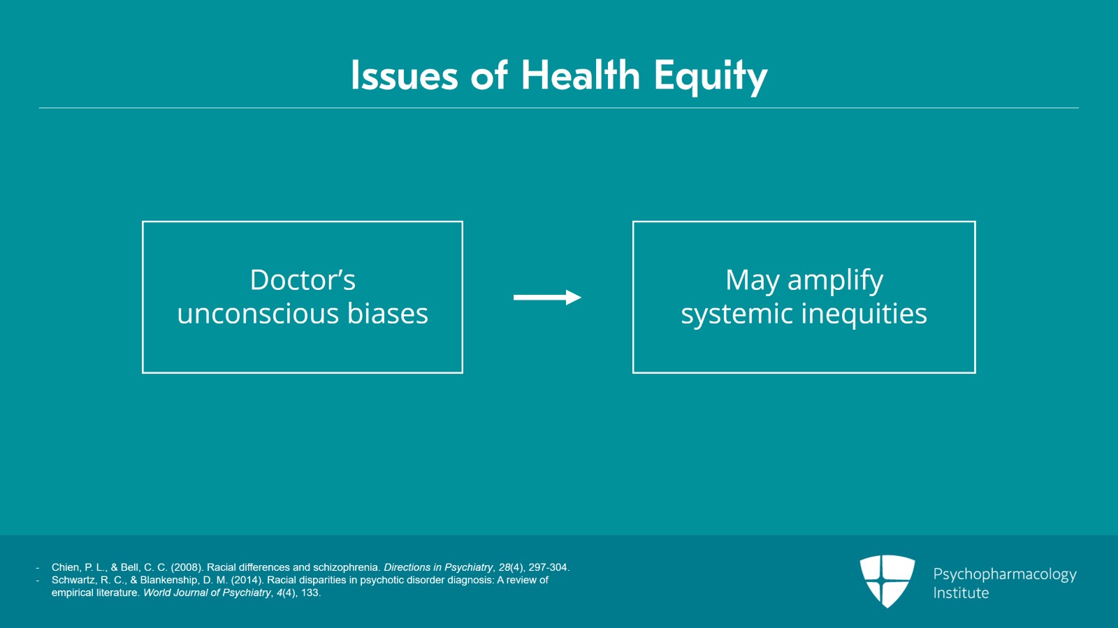 And, as I've emphasized in a number of places around countertransference, I think we're learning more and more the extent to which there are issues of health equity involved in all of this. And so, as part of the recognition of the irrationality of the prescribers, it's also important to recognize how our own unconscious biases may perpetuate or amplify systemic inequities. We know that there are pressures towards misdiagnosis in our patients of color.