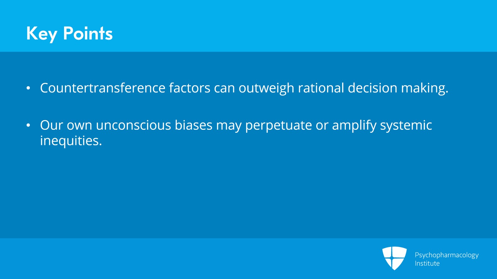 There is an increased likelihood that countertransference factors outweigh rational decision-making in the prescription of medications. These things may be operating in us outside of our awareness. As part of the recognition of the irrationality of the prescribers, it's also important to recognize how our own unconscious biases may perpetuate or amplify systemic inequities.