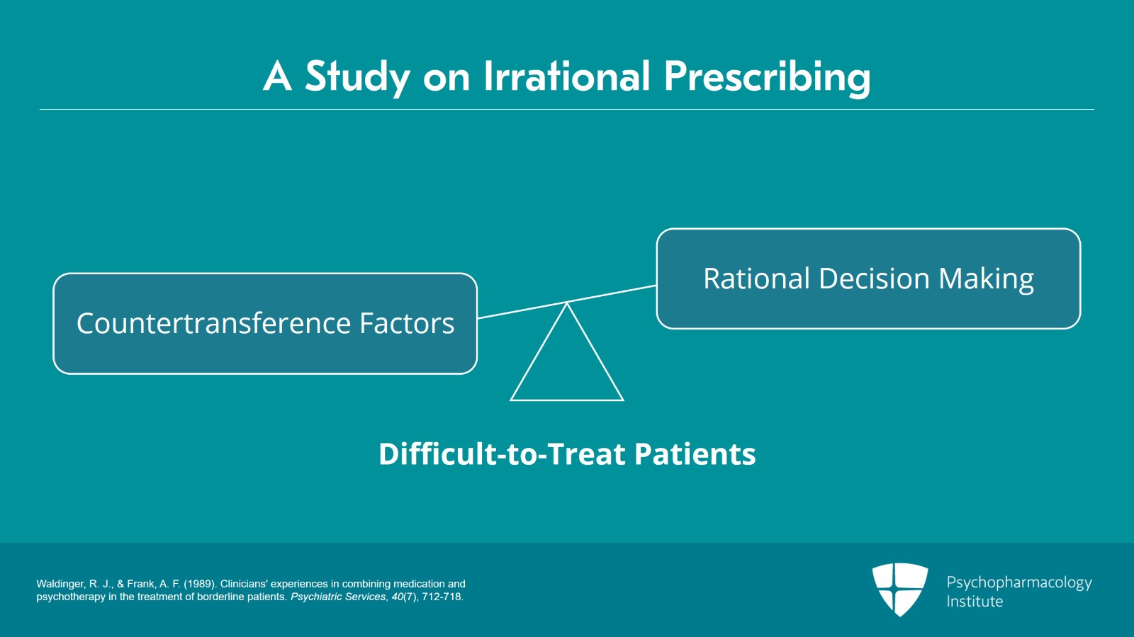 And patients who are struggling with overwhelming affects very often induce corresponding affects in others, right? So, the patients who are feeling angry can make us angry. The patients who feel helpless and hopeless can induce corresponding feelings of helplessness and hopelessness in us. And, at times, we can then prescribe in efforts not to address the patient's anxiety but to address our own, and this can lead to irrational prescribing.
