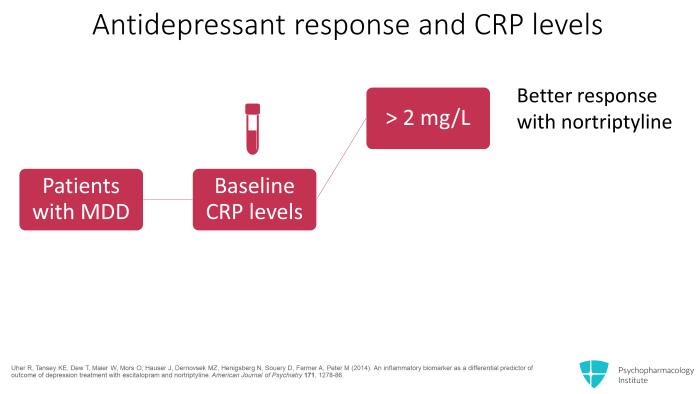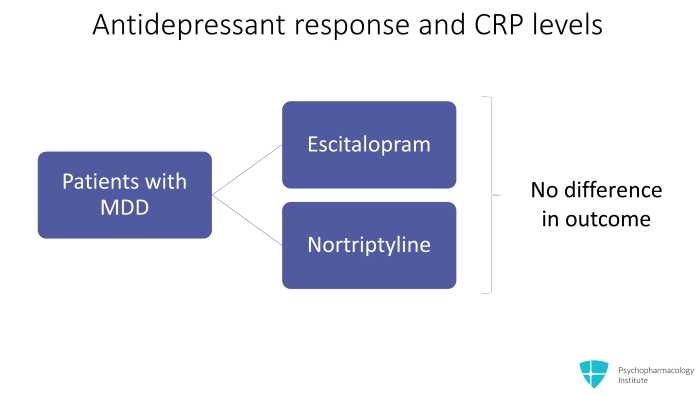 Patients who had CRP levels above 2 mg/L did rather better with nortriptyline than with the escitalopram.