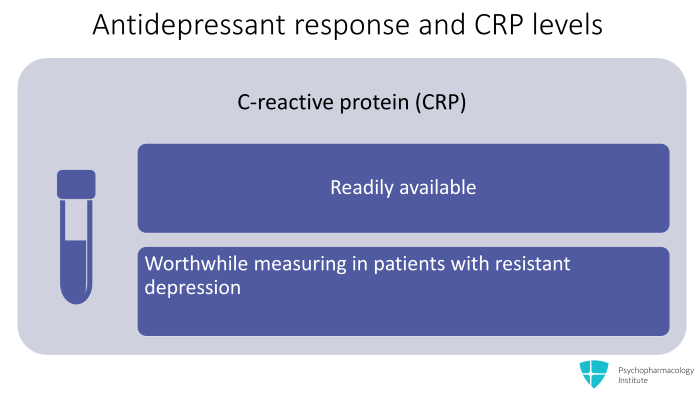 Because CRP is a readily available laboratory test, it might be worthwhile measuring in patients with resistant depression