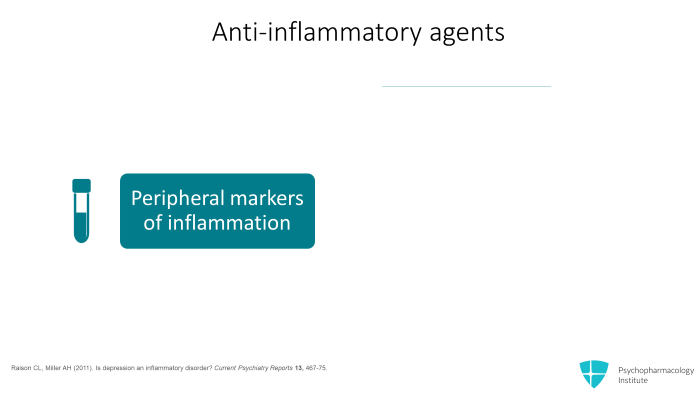 Of course, the evidence for inflammation in patients with resistant depression also suggests that there might be a role for specific anti-inflammatory treatments in improving depressive symptomatology.