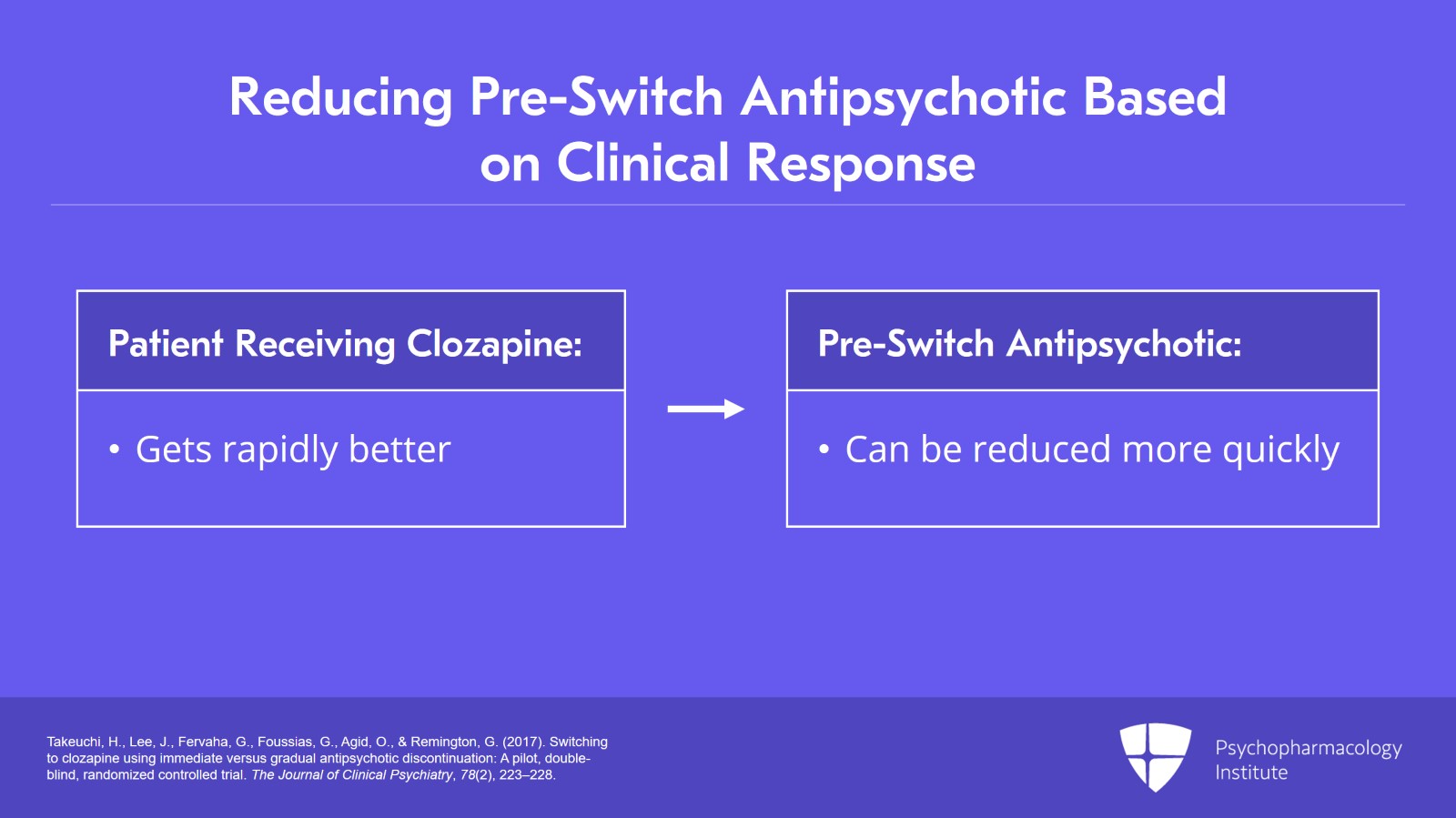 And so that said, the dose of the pre-switch antipsychotic can be reduced based on clinical response to clozapine.