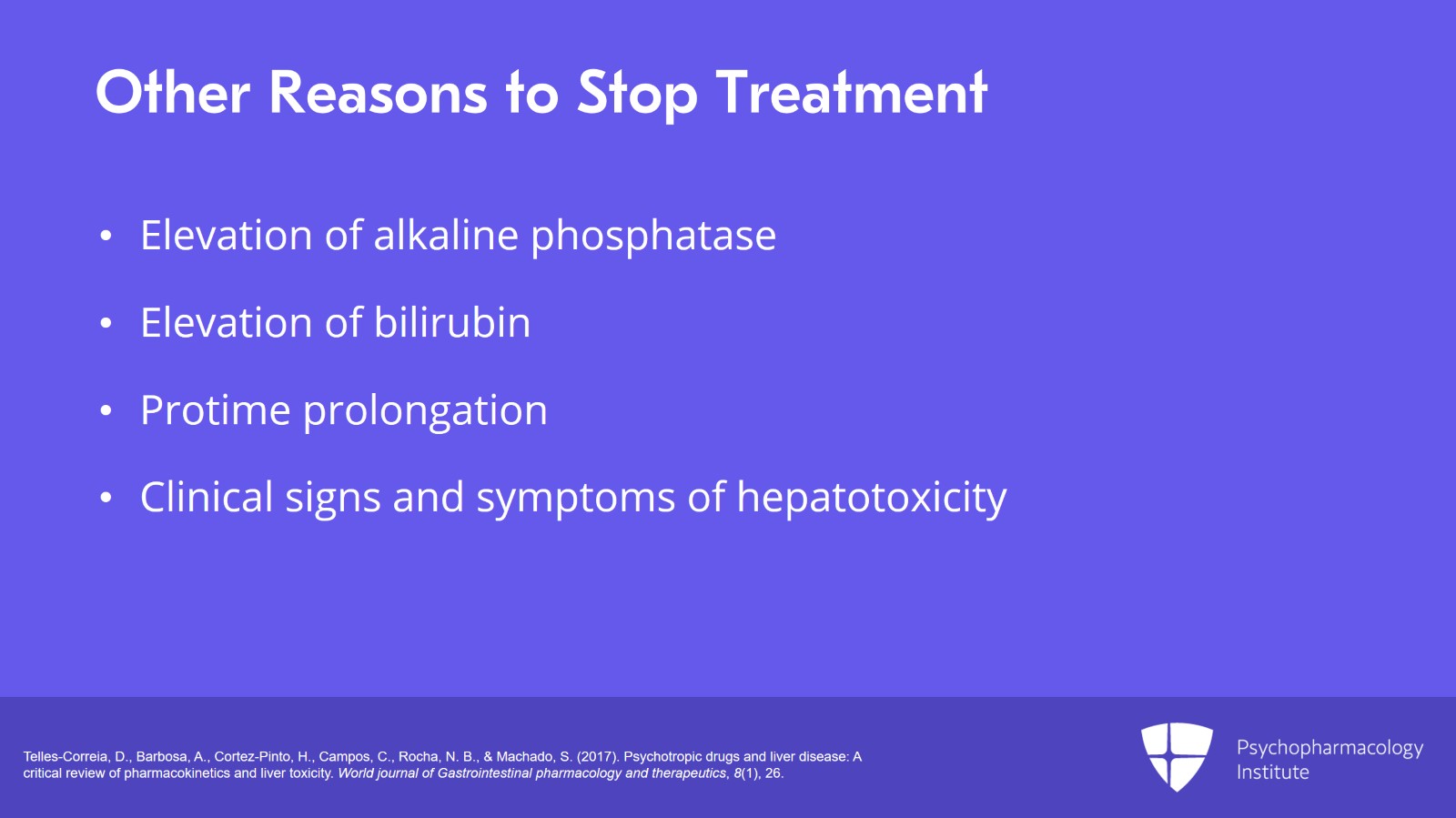 - Telles-Correia, D., Barbosa, A., Cortez-Pinto, H., Campos, C., Rocha, N. B., & Machado, S. (2017). Psychotropic drugs and liver disease: A critical review of pharmacokinetics and liver toxicity. World journal of Gastrointestinal pharmacology and therapeutics, 8(1), 26.