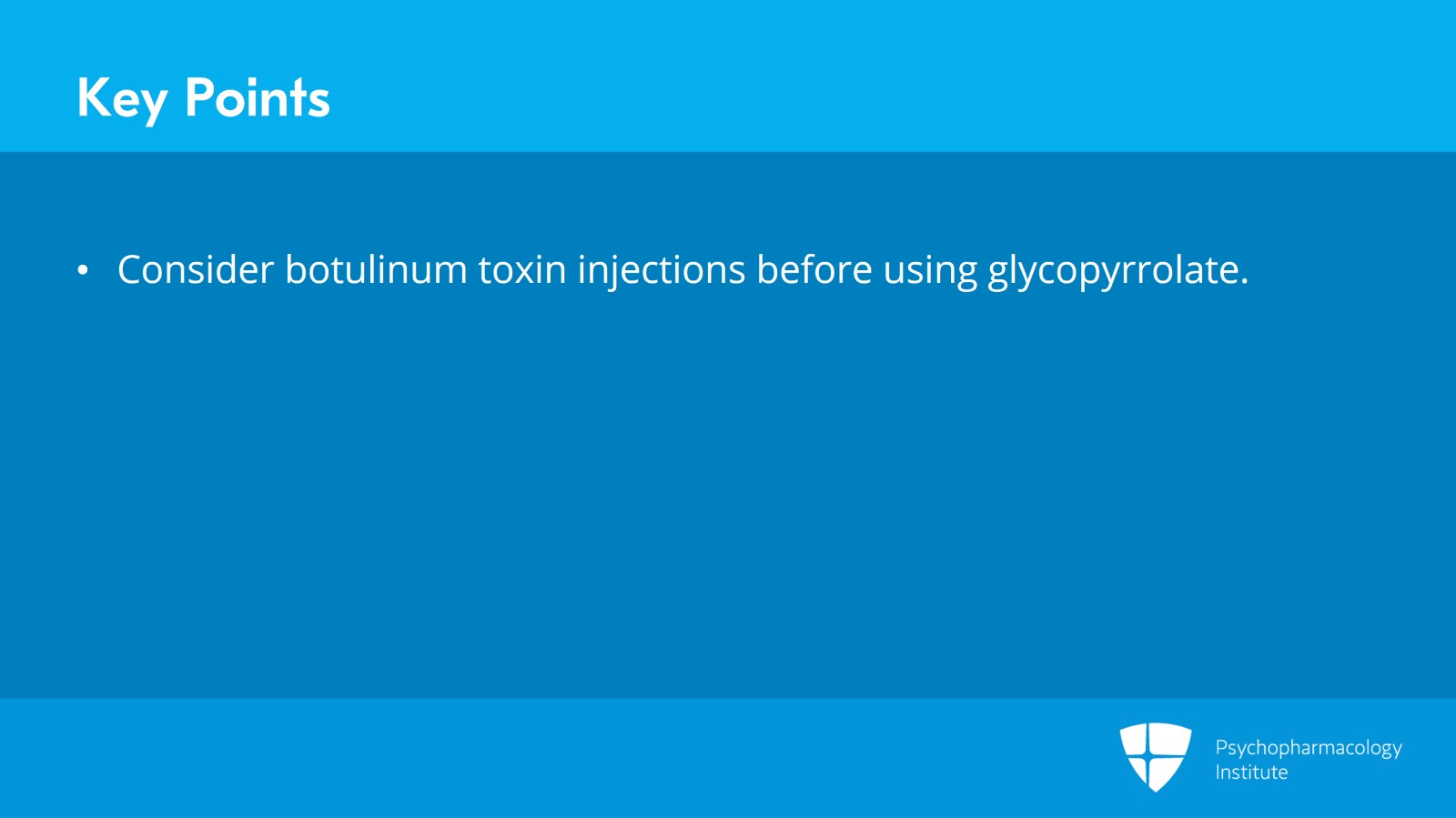• Consider botulinum toxin injections before using glycopyrrolate.
