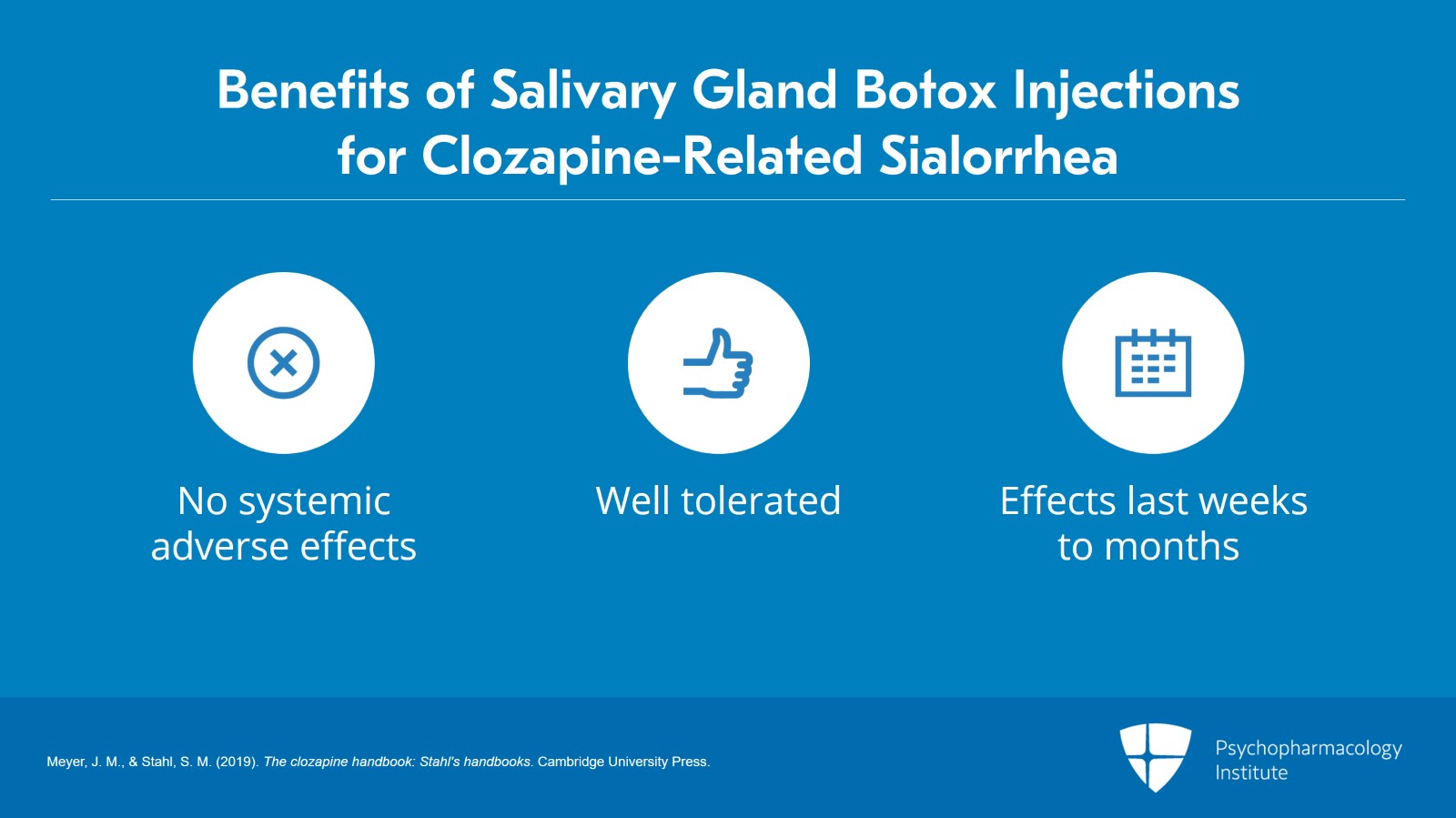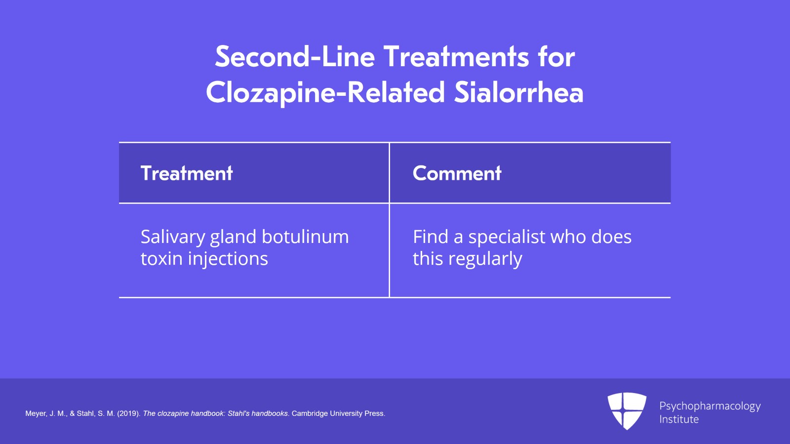 • Meyer, J. M., & Stahl, S. M. (2019). The clozapine handbook: Stahl's handbooks. Cambridge University Press.