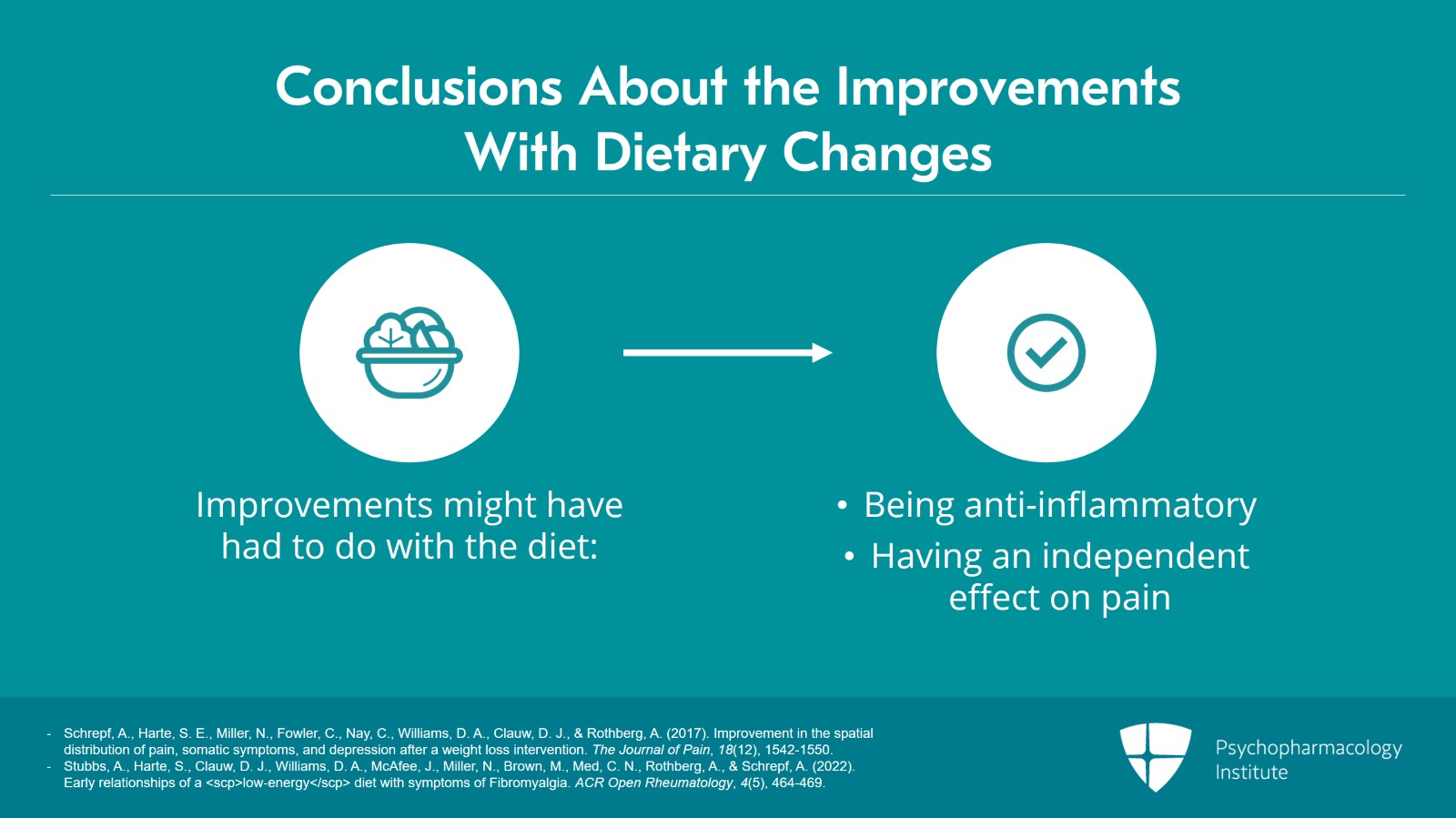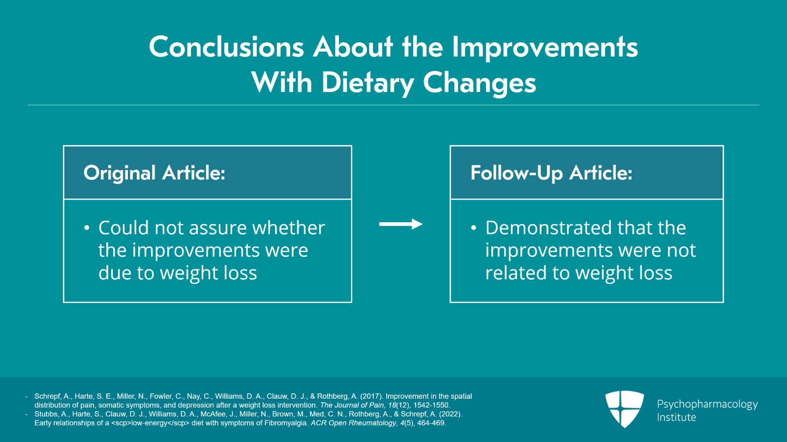 Weight loss does help improve pain in weightbearing joints but we think that the improvements that we’re seeing with this caloric restriction probably have more to do with this diet either being anti-inflammatory or having some kind of independent effect on pain and other symptoms that we see in conditions like fibromyalgia.