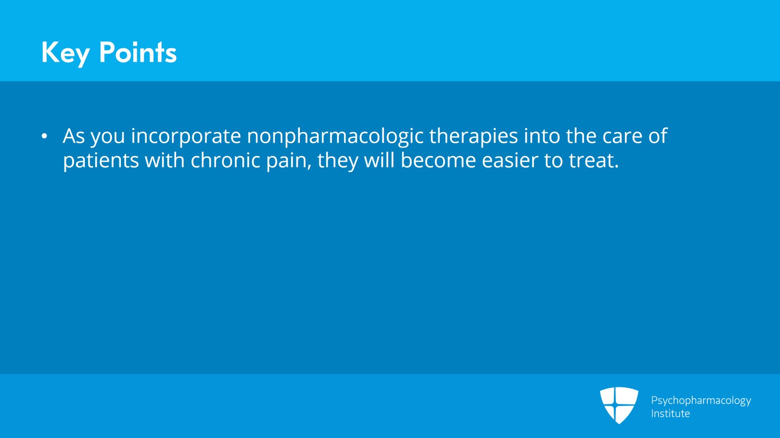 And as you start using more and more of these nonpharm therapies in your chronic pain patients, your patients will become easier to treat because they will derive some benefit from those nonpharmacologic therapies.