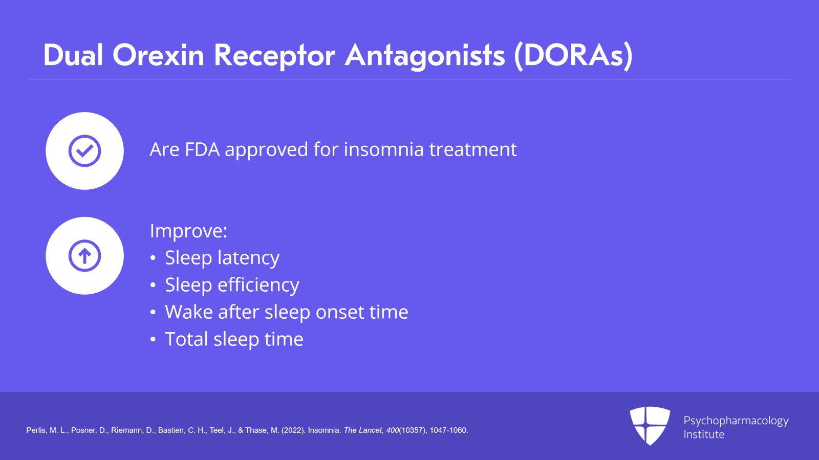 • DORAs have shown efficacy for sleep-onset and sleep-maintenance insomnia.