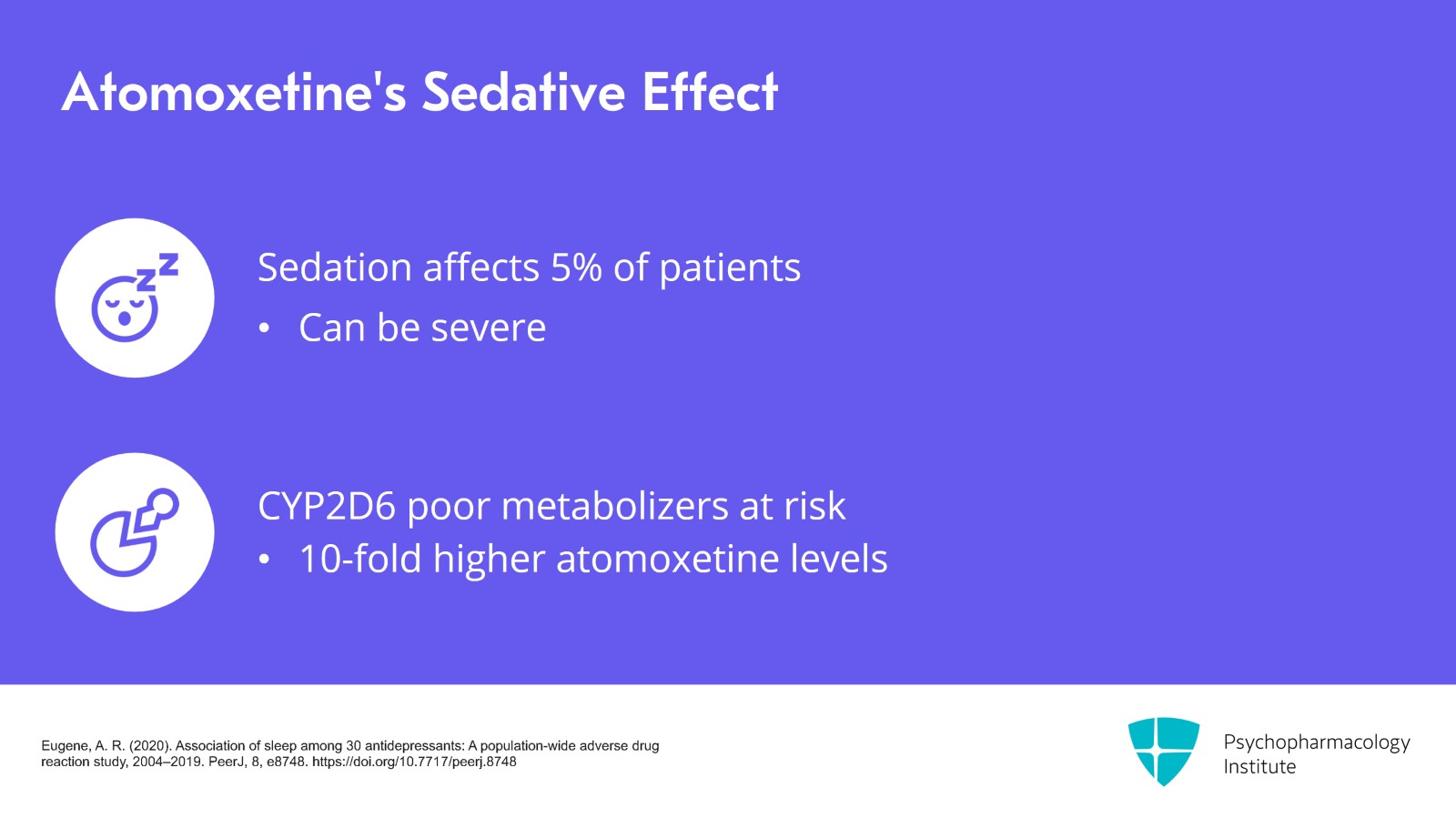 Let's look at how that plays out with the ADHD medication atomoxetine, Strattera. Atomoxetine causes sedation in about 1 in 20 patients but for those 1 in 20 the problem can be quite severe, so severe that atomoxetine ranks near the top of medications with an antidepressant structure that triggered reports of sedation to the FDA surveillance system based on a study that classified atomoxetine as an antidepressant which it was originally designed as. How did a rare side effect make it to the top of that list? Well, atomoxetine levels peaked 10-fold higher in people who are poor CYP2D6 metabolizers. So with this medication, when it rains, it pours.