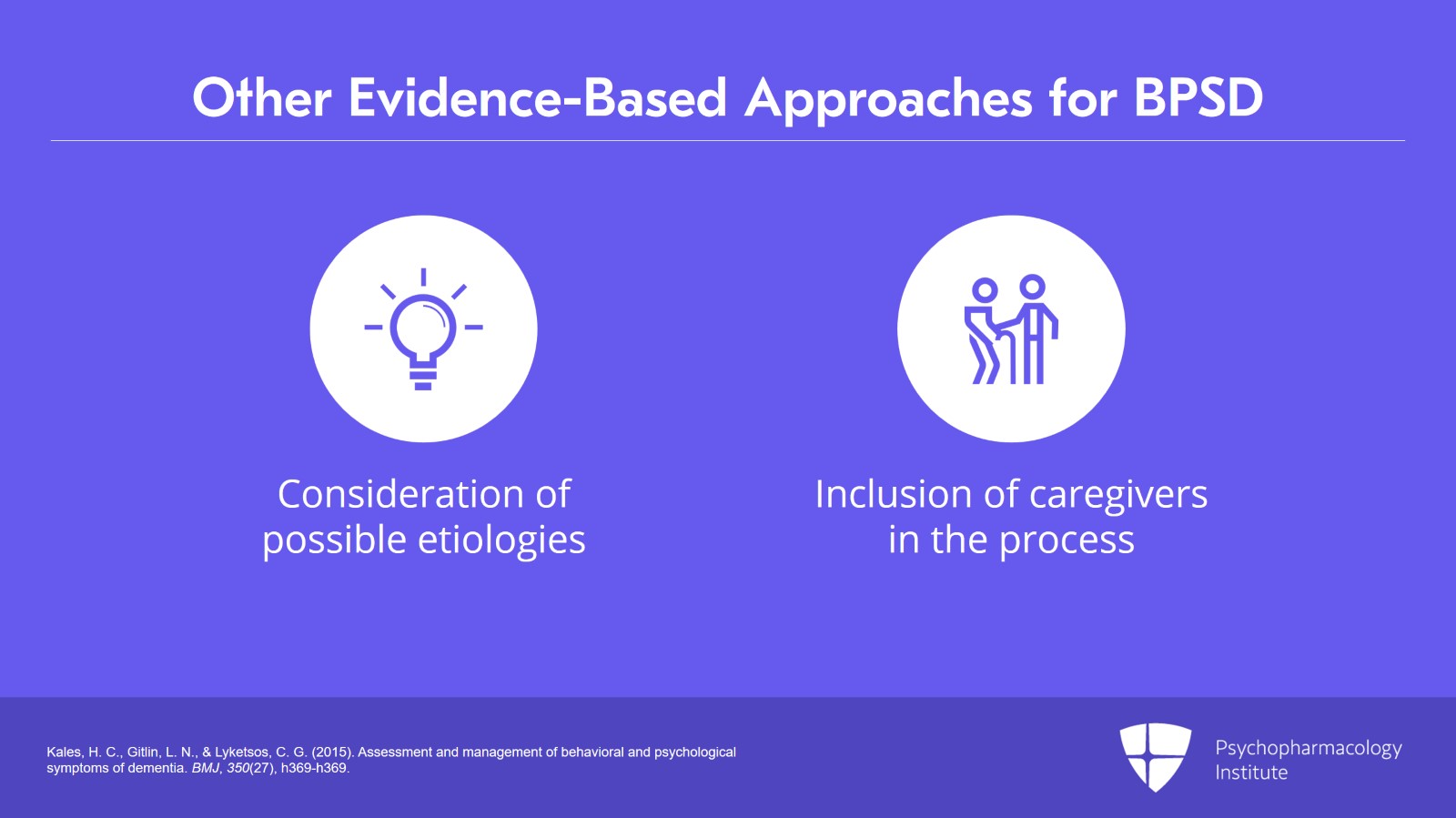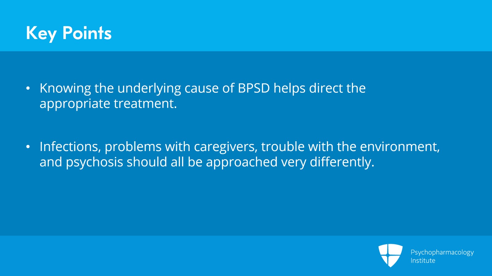 • Knowing the underlying cause of BPSD helps direct the appropriate treatment.