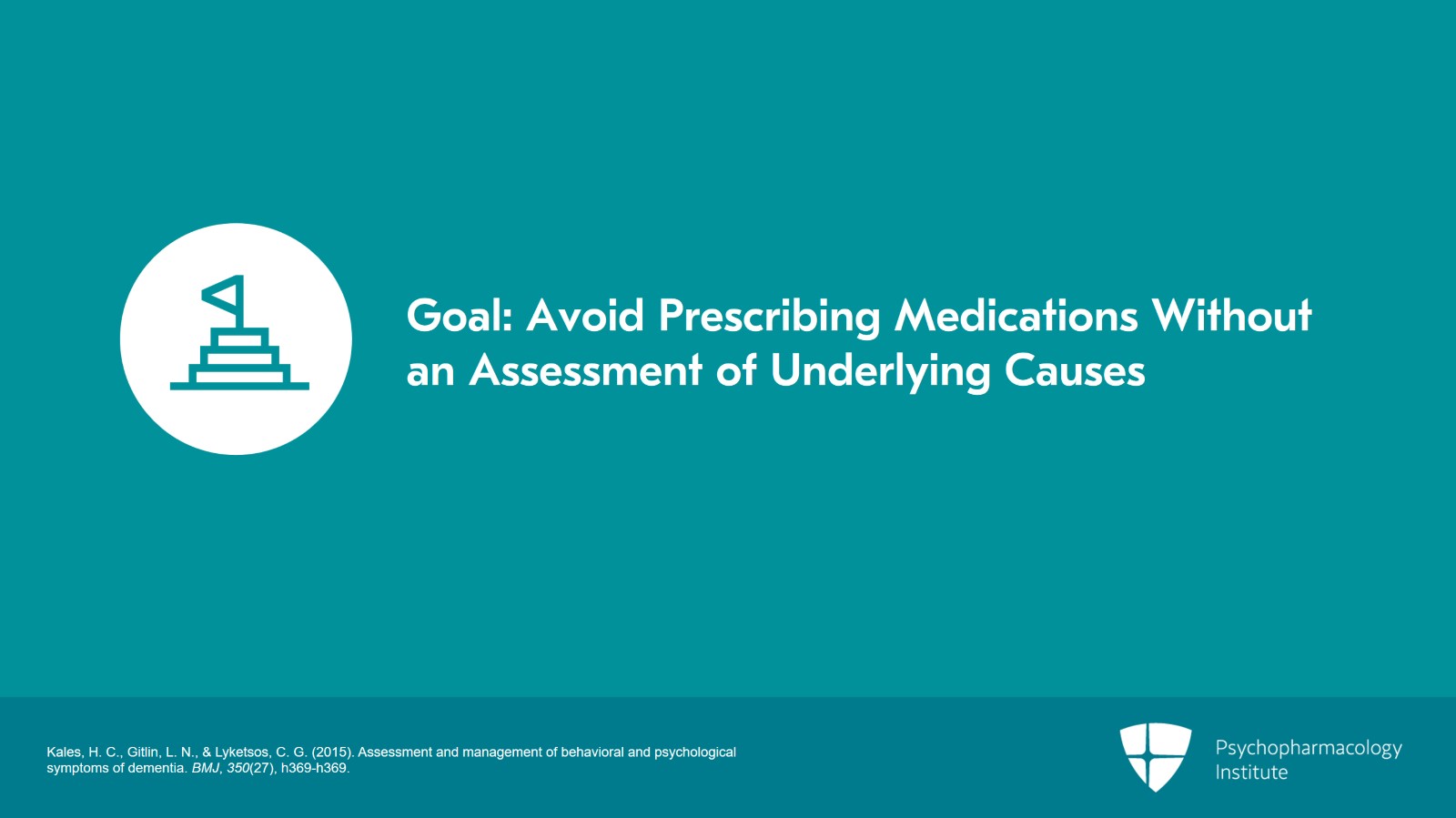 And really, the goal is to try to avoid knee jerk prescribing of medications without an assessment of underlying causes. And in the next section, I’ll kind of walk through how we think about nonpharmacologic treatment options for behavioral disturbances in dementia.