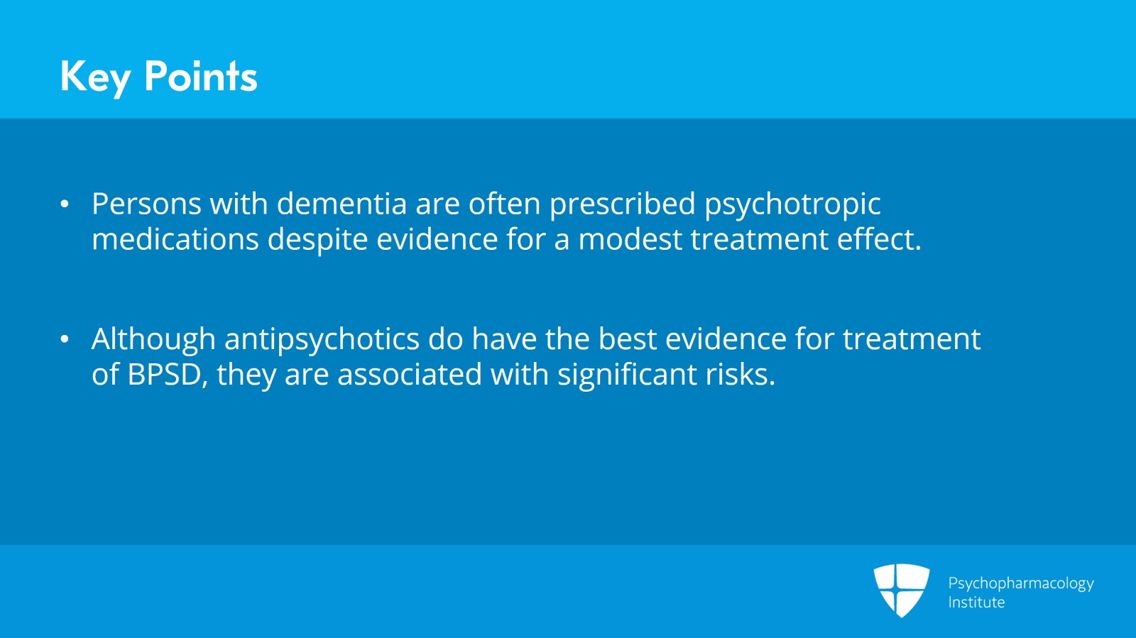 • Although antipsychotics do have the best evidence for treatment of BPSD, they are associated with significant risks.
