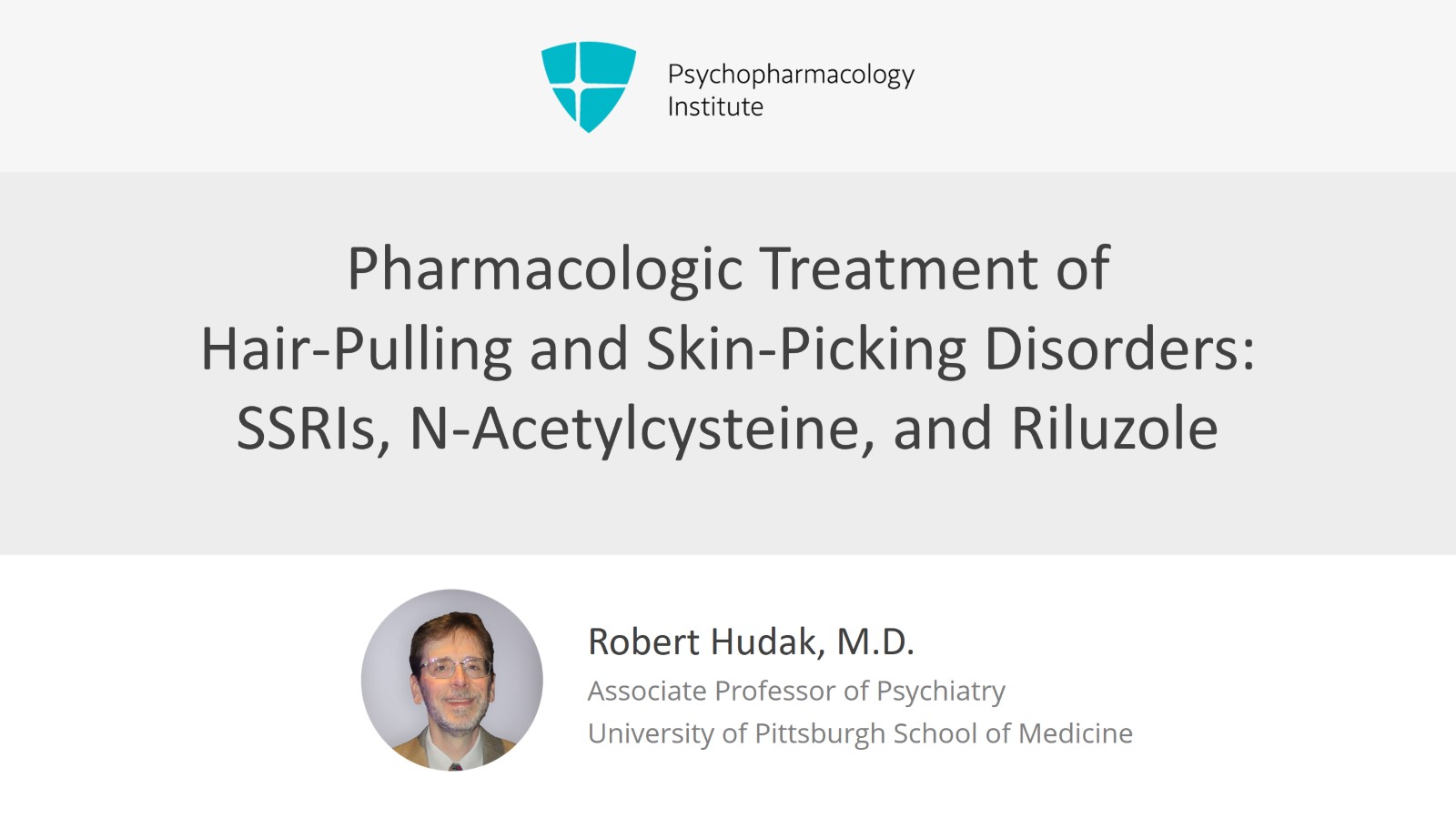 So video 7. Pharmacologic Treatment of Hair Pulling and Skin Picking Disorders: SSRIs, N-acetylcysteine and Riluzole.