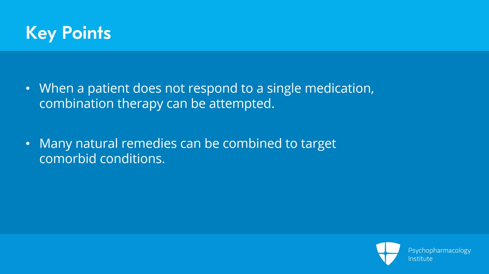 Let me summarize this section with three key points. When a patient does not respond to a single medication, combination therapy can be attempted. Many of the natural remedies discussed here can be combined with each other in order to target comorbid conditions such as depression with anxiety or other combinations of illnesses.