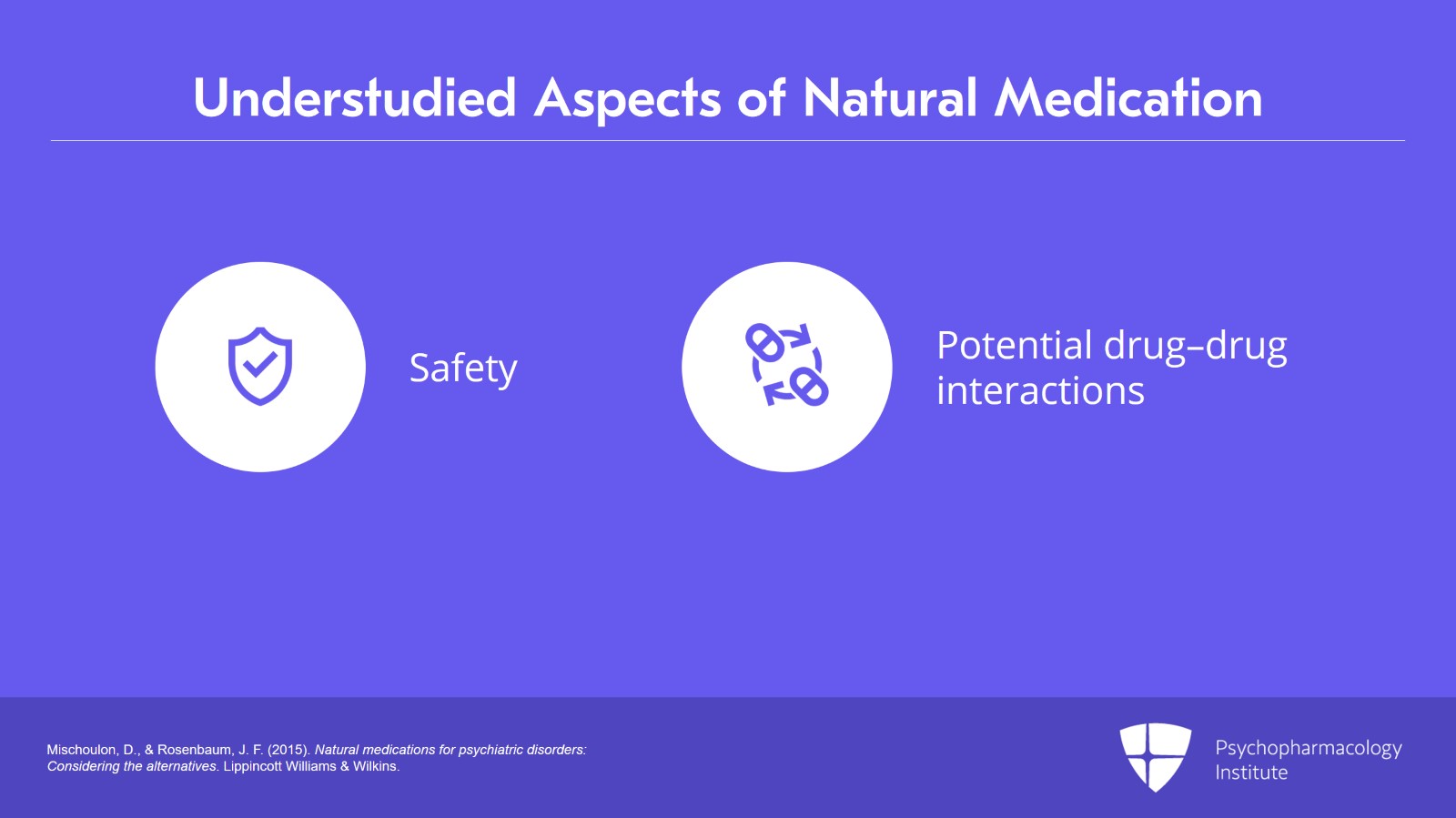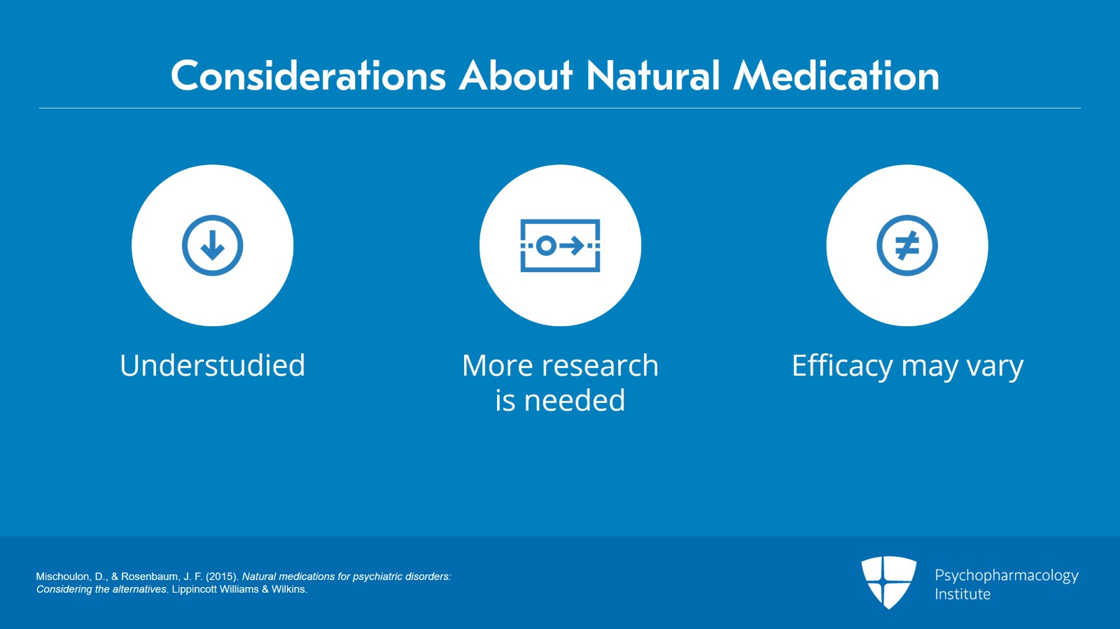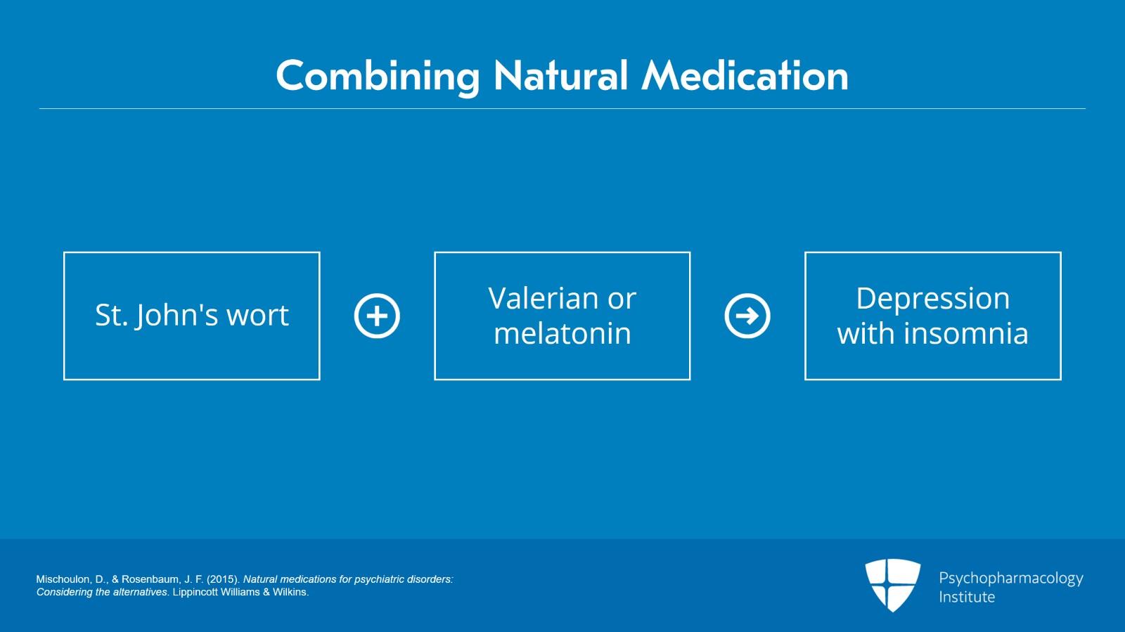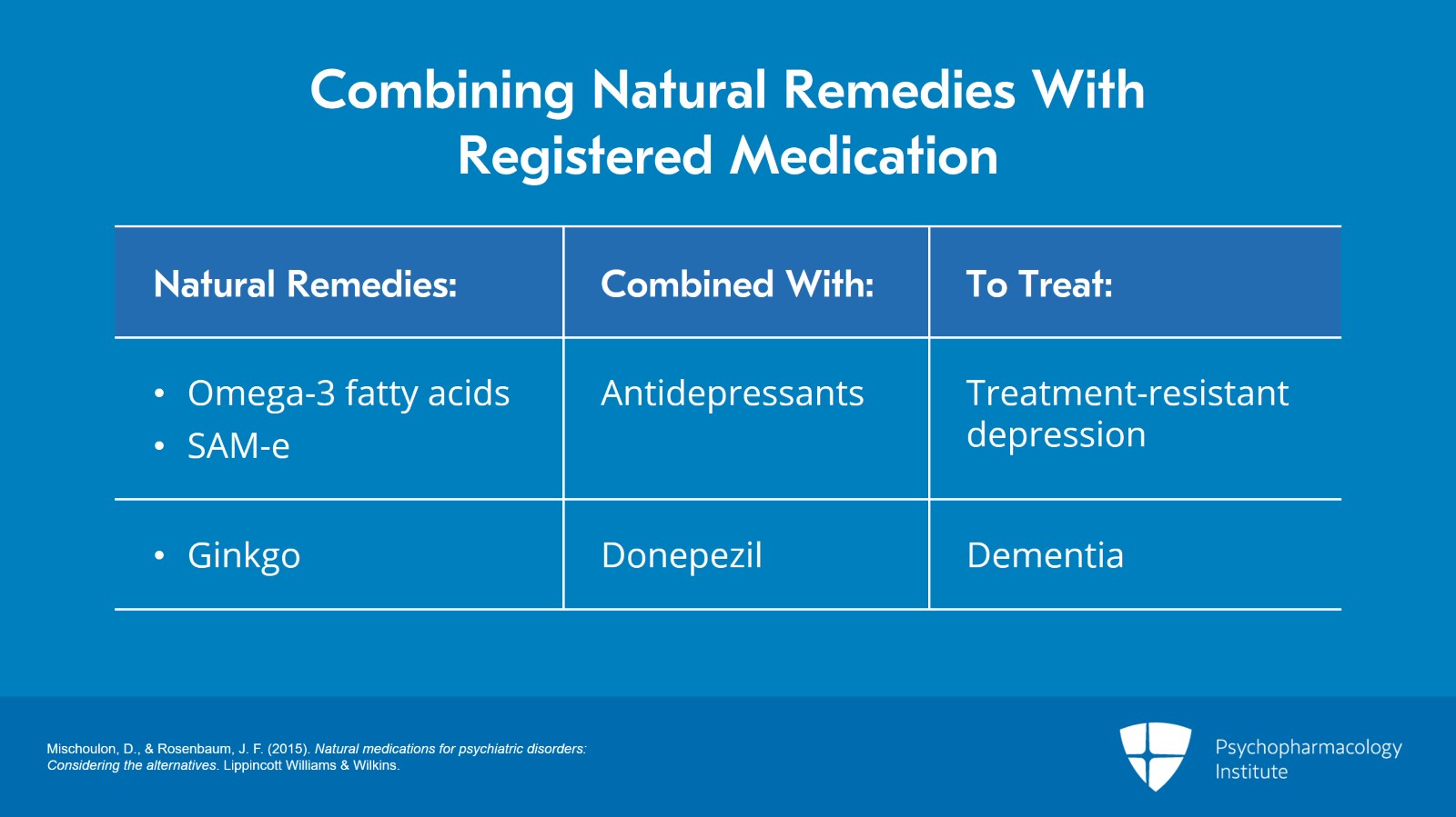 • Mischoulon, D., & Rosenbaum, J. F. (2015). Natural medications for psychiatric disorders: Considering the alternatives. Lippincott Williams & Wilkins.