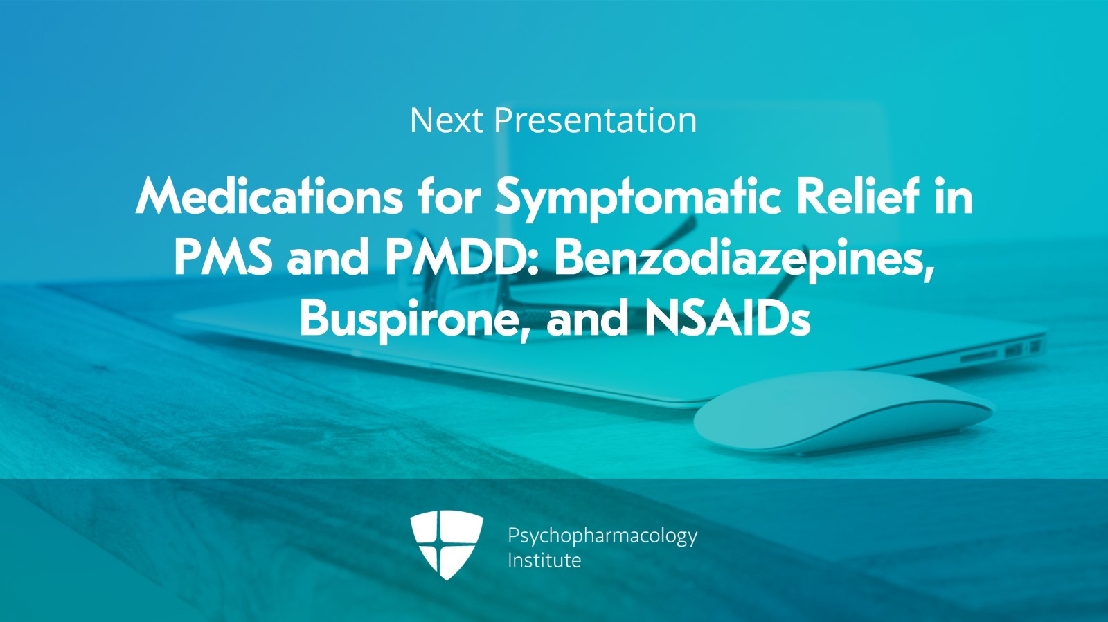 So we've talked a bit about nonpharmacological treatments for PMS and PMDD. What about psychopharmacology? Antidepressants are the first-line, gold standard treatment for PMS and PMDD.