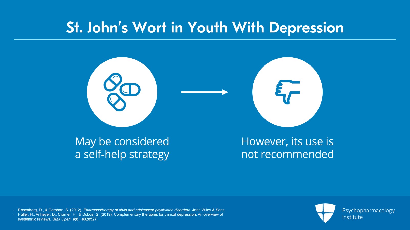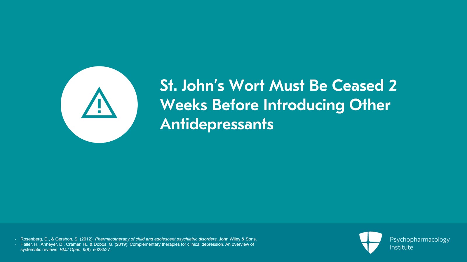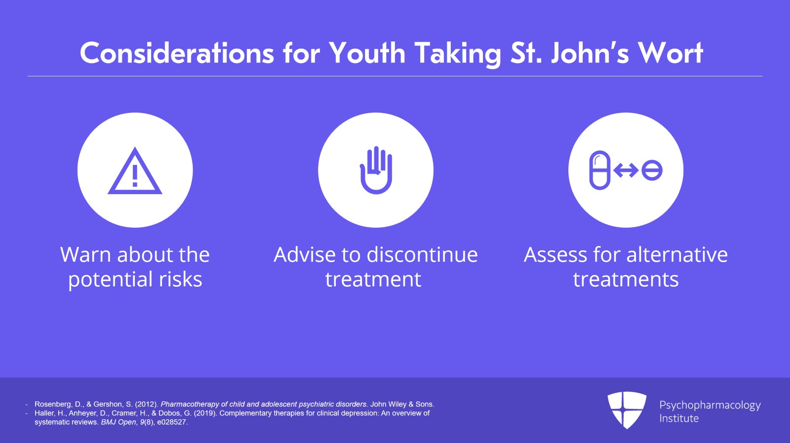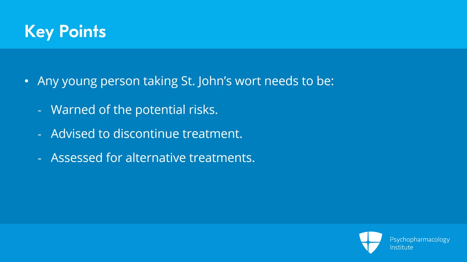 Additionally, any young person who is taking St. John’s wort needs to be warned of the potential risks, advised to discontinue treatment, and then assessed for alternative treatments.