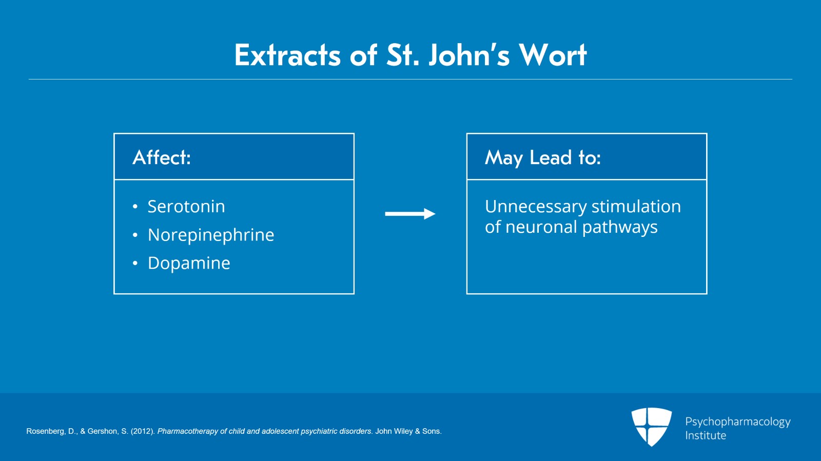 These extracts, however, contain various chemical constituents that have differing pharmacologic effects on serotonin, norepinephrine, dopamine, and other neurotransmitters.